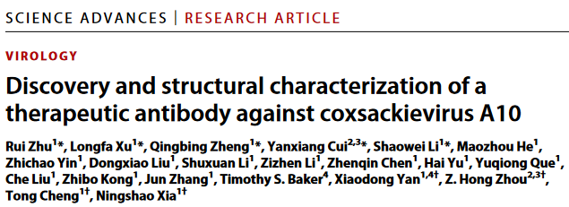 Sci. Adv.:新型抗柯萨奇病毒A10治疗性抗体