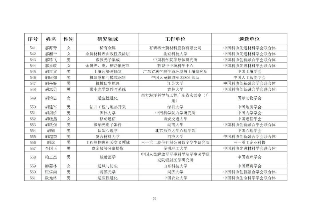 752名!第九届中国科协青年人才托举工程人选名单公示
