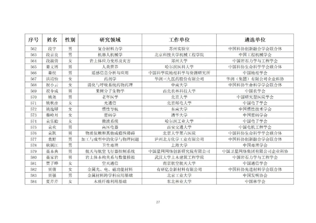 752名!第九届中国科协青年人才托举工程人选名单公示