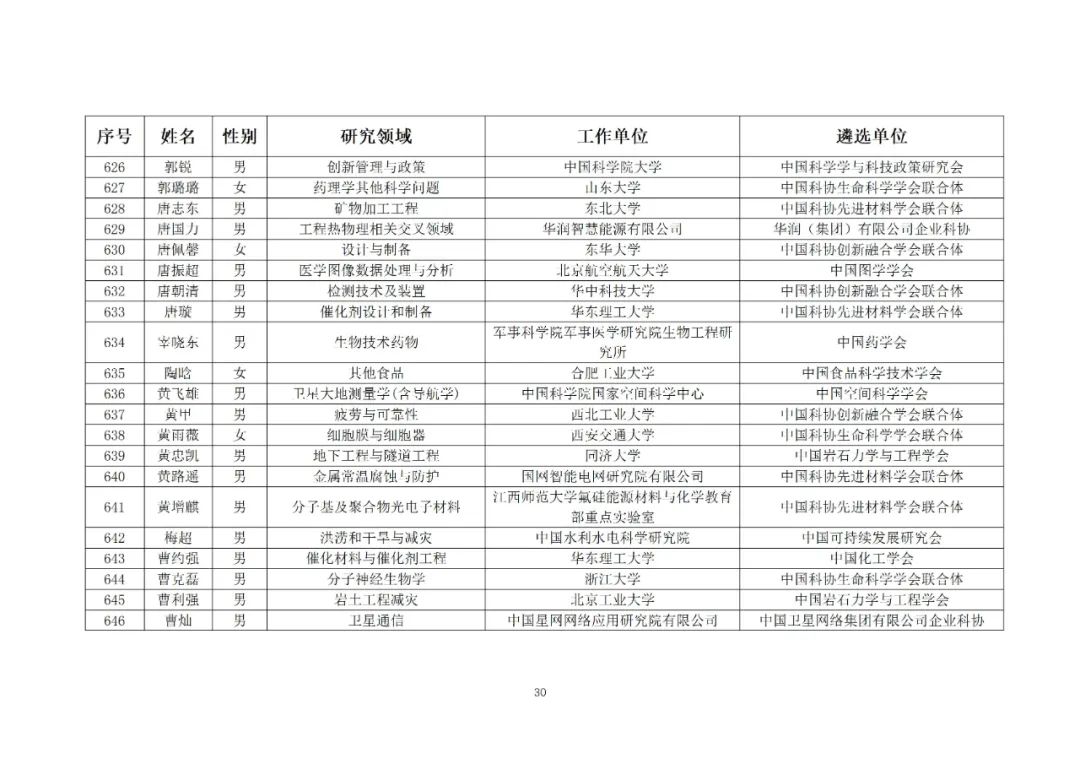 752名!第九届中国科协青年人才托举工程人选名单公示