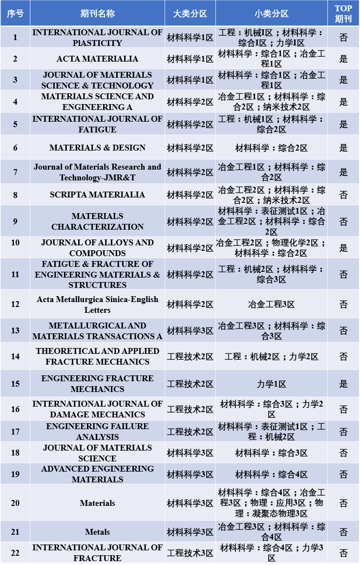 【信息速递】2023年中科院分区@金属结构材料疲劳