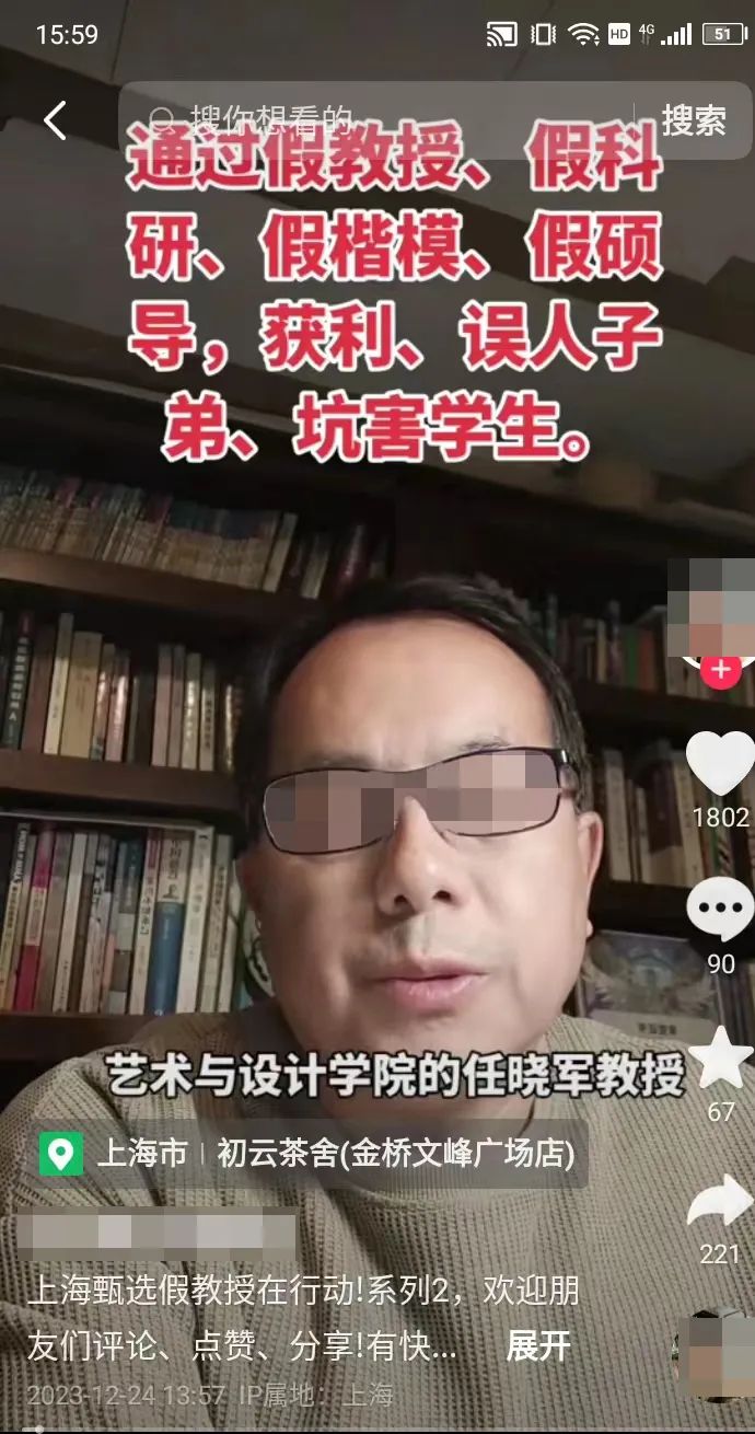 这段视频迅速引发关注,大家对于公众对于高等教育领域的诚信问题再次感到担忧。小编查阅发现,早在12月21日,任晓军教授就发布了第一个举报视频,有身份证的实名举报视频: