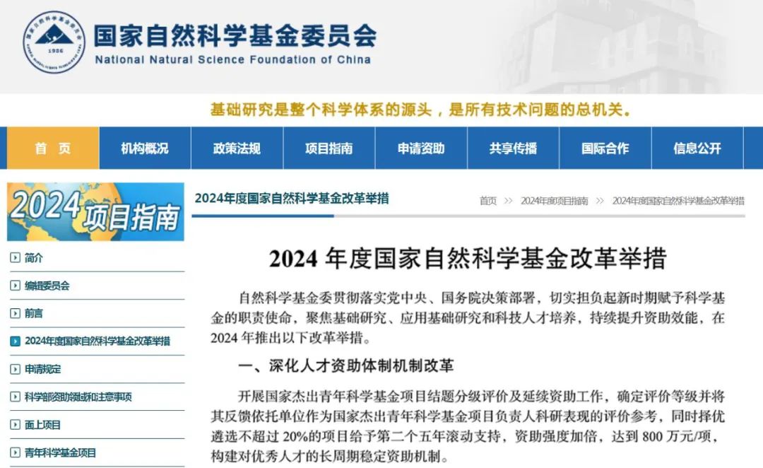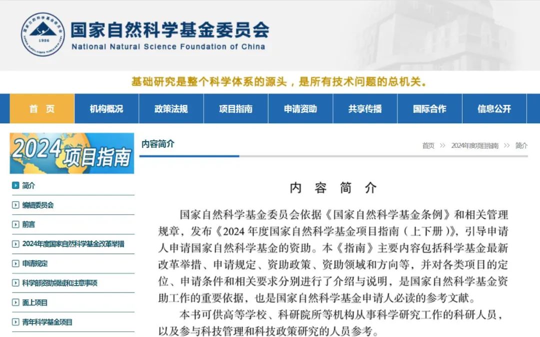1月11日,国家自然科学基金委员会发布了2024年的项目指南。
