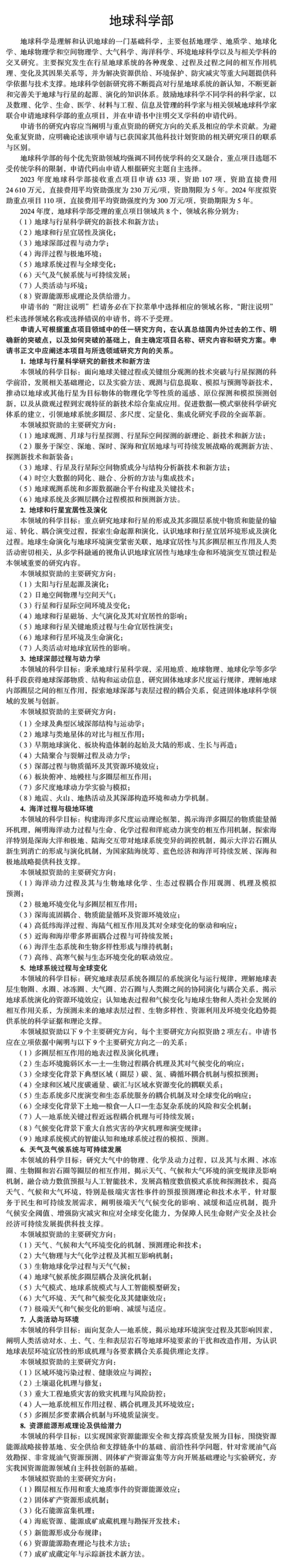 近日,《2024年度国家自然科学基金项目指南》正式发布,其中重点项目支持从事基础研究的科学技术人员针对已有较好基础的研究方向或学科生长点开展深入、系统的创新性研究,促进学科发展,推动若干重要领域或科学前沿取得突破。为更好地服务广大科技工作者,小编对指南中各学部重点项目的优先资助领域进行了梳理,仅供参考。具体内容请参见国家自然科学基金委员会官方网站。