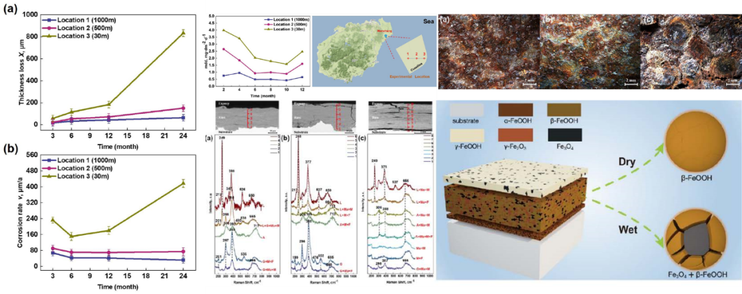 钢铁是支撑和维系当代社会生存和发展最重要的结构材料,使用量大,应用面广。在所有材料总腐蚀损失中,钢铁的腐蚀占比最大,而在钢铁的总腐蚀损失中,大气锈蚀造成的损失占比最大。大量研究和应用表明,耐候钢是提高钢铁耐蚀性的有效手段,研究其在典型大气中的腐蚀行为与锈层演化机制具有重大的科学意义和工程价值。