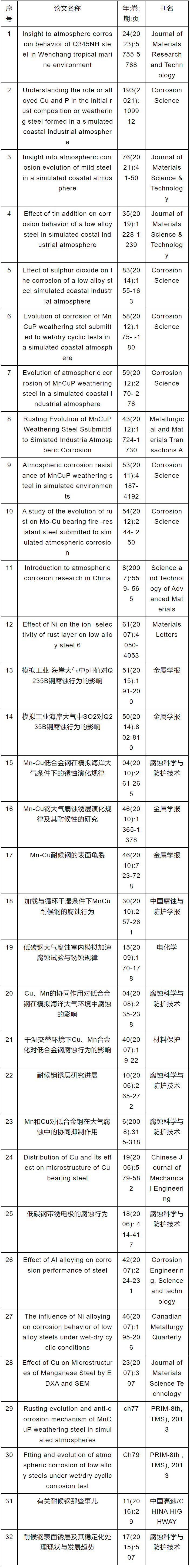 近年来,研究团队致力于耐候钢的设计、选择与腐蚀性能评价工作,先后承担并完成了973和国家自然科学基金委下达的多项科研任务。针对耐候钢在三种典型大气环境下的适用性评价,稳定性锈层在不同环境下的关键生成因素,不同合金元素协同耐蚀作用展开了大量研究并取得了一系列研究进展,获得了以下主要的创新性成果。