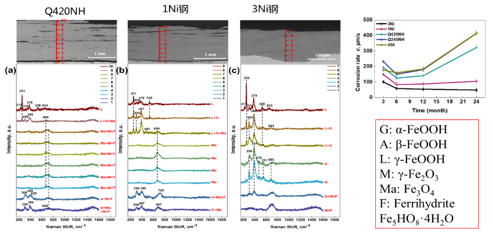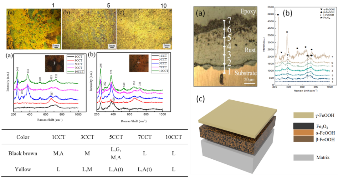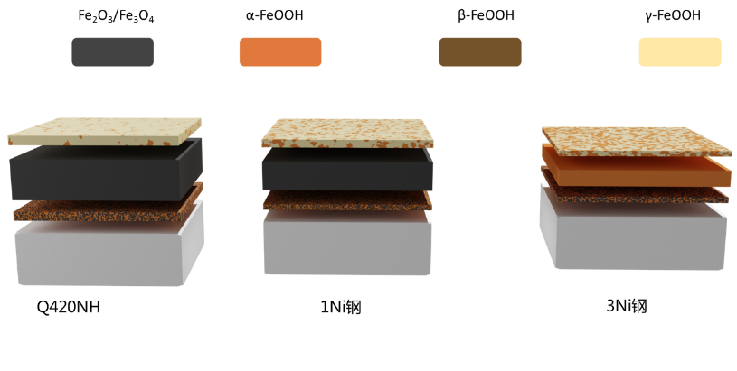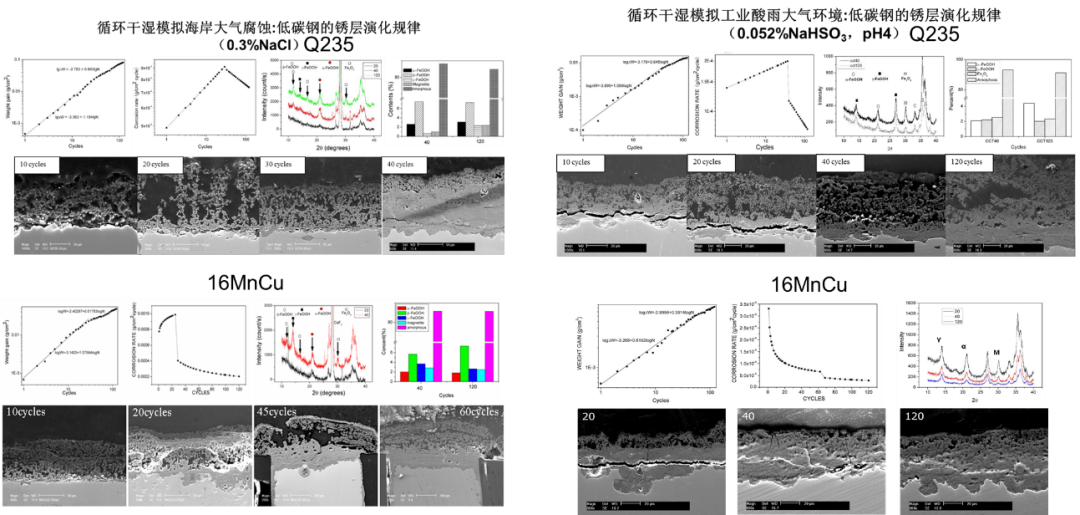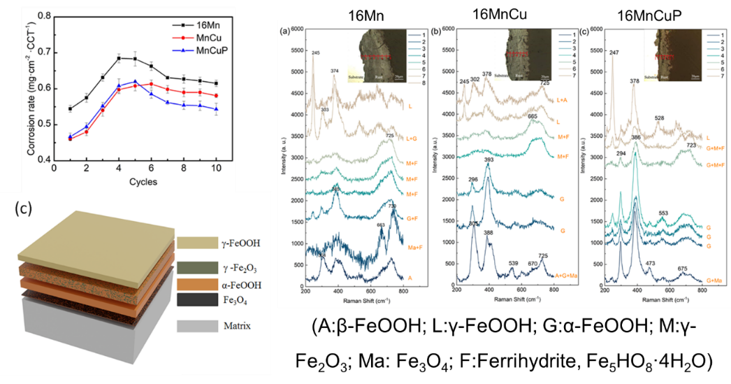 揭示了典型耐候钢在模拟海岸、工业、海岸-工业三种典型大气环境下的腐蚀及锈层演化机制;