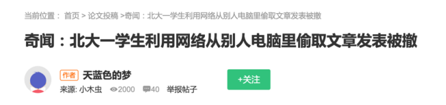 据小木虫论坛的网友爆料,北京大学化学与分子工程学院的一位研究生,利用网络盗取别人的论文,还自作主张发表了,作者也没挂自己,而是随机选中了武汉大学化学院的3位无辜路人......