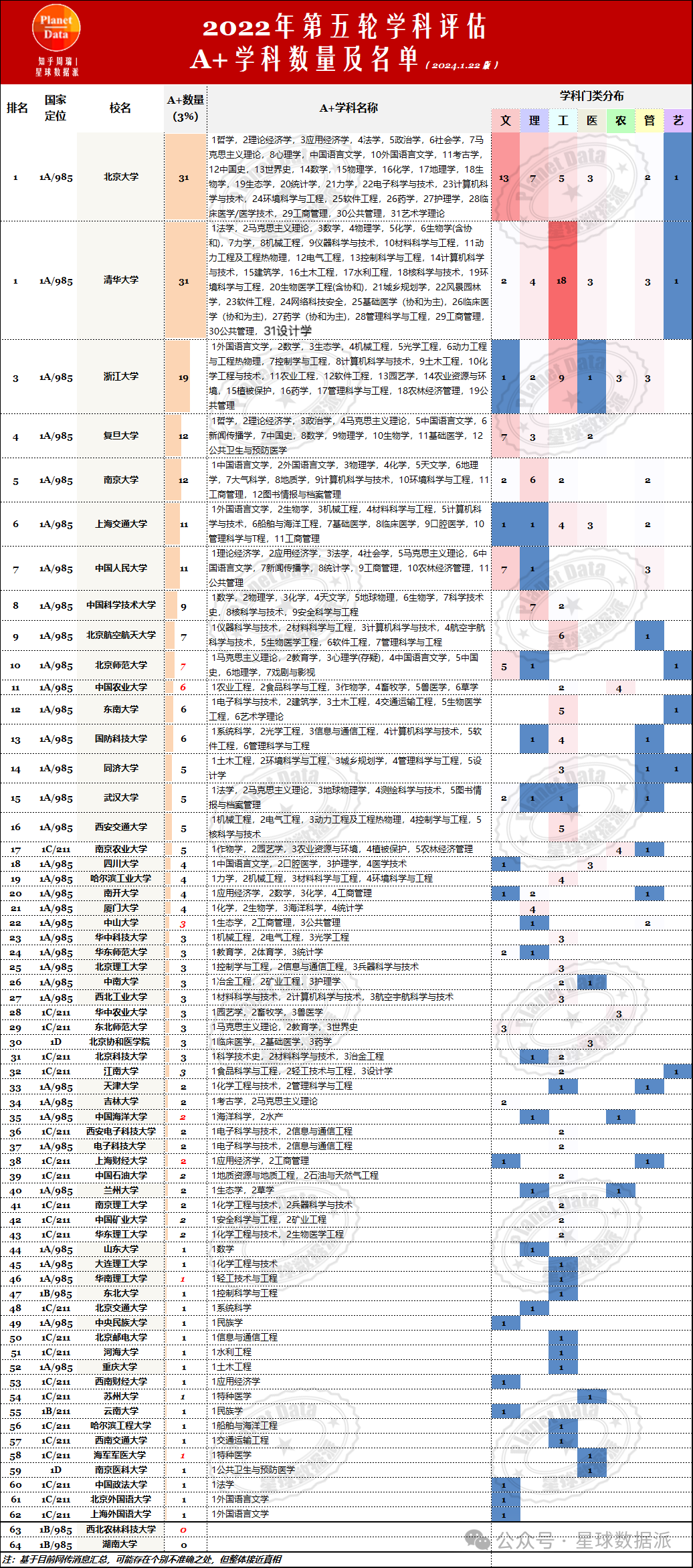 本文就将基于目前最新网传数据所整理的主要985、211名校的A+学科数量及完整名单,对各校的王牌学科进行盘点,以期为2024年高考的广大考生和家长提供系统全面的名校择校参考基准。