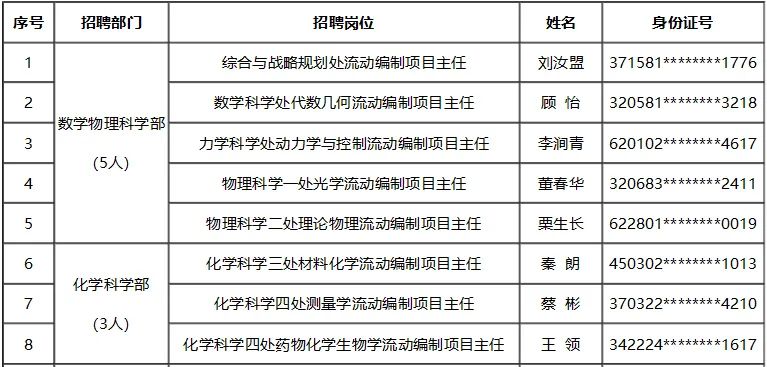 2024年国家自然科学基金委员会流动编制工作人员考察人选名单