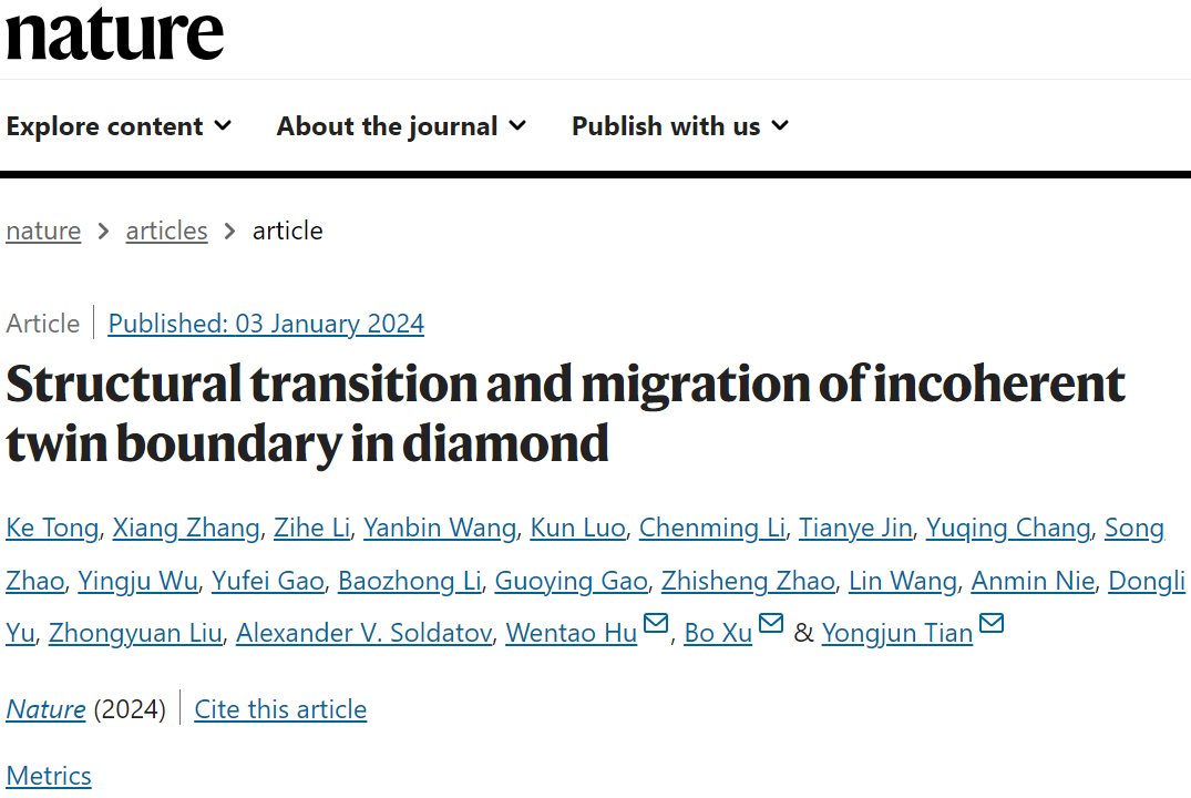 继2024年1月3日,燕山大学胡文涛&徐波&田永君院士发表第一篇Nature(燕山大学,2024年第一篇Nature!)之后,2024年2月21日燕山大学再发Nature,同样来自田永君院士团队。