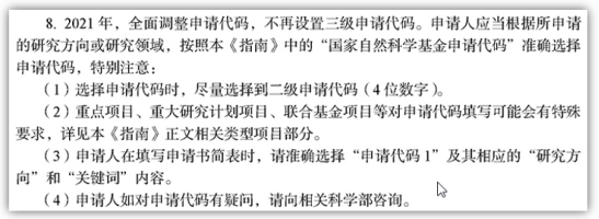 近些年来(尤其是2021年以来)指南都会明确规定:进一步推进“申请代码”、“研究方向”和“关键词”的规范化使用,申请人在填写申请书简表时,准确选择“申请代码”及其相应的“研究方向”和“关键词”内容。 为何这么说呢?因为:关键词的选择也关系到我们的标书会分到什么样的评审专家手上!!! 具体情况,大家可以仔细看看近几年指南中的相关内容。大家回顾一下是2021年、2022年和2023年NSFC的指南规定: 如果关键词没有太多用处,NSFC指南为何要提及呢?为何要强调规范化使用呢?