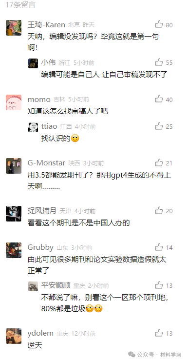 不得不说这个感觉就很熟悉了,如果你经常与ChatGPT交流,你会注意到它的回复总是彬彬有礼,这一点让人印象深刻。上个月有人报道过发表在水刊上的论文使用 MidJourney 生成图片,但这篇文章发表的期刊 Surfaces and Interfaces 是中科院一区期刊,最新影响因子6.2。