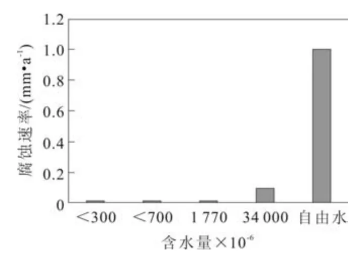 图1 X65钢在不同含水量的超临界CO2环境中的腐蚀速率