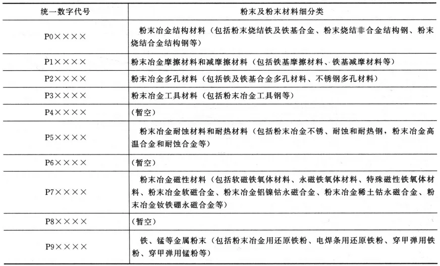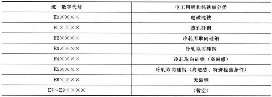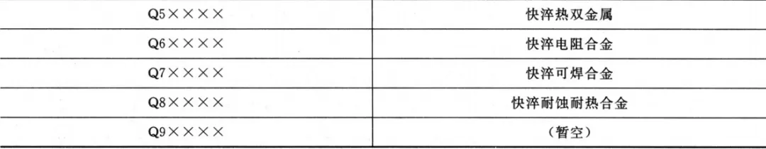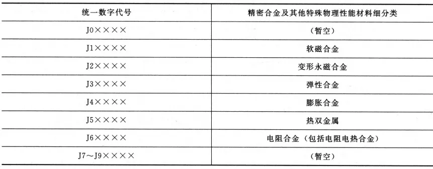 表8 精密合金及其他特殊物理性能材料细分类与统一数字代号