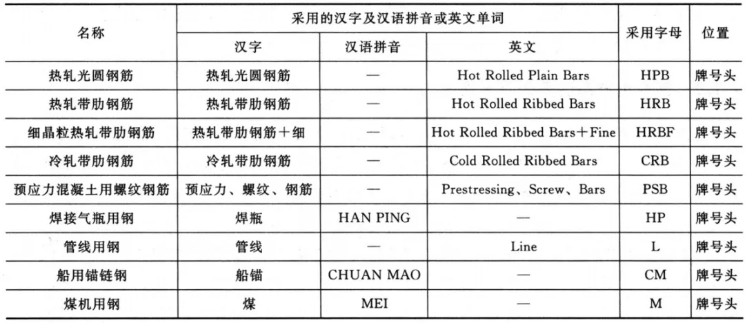 钢铁产品牌号的表示,通常采用大写汉语拼音字母、化学元素符号和阿拉伯数字相结合的方法表示。为了便于国际交流和贸易需要,也可采用大写英文字母或国际惯例表示符号。