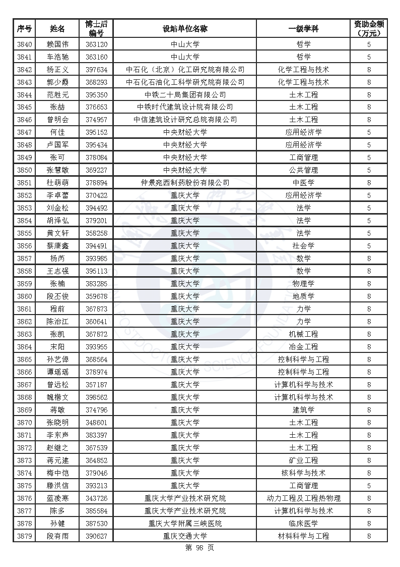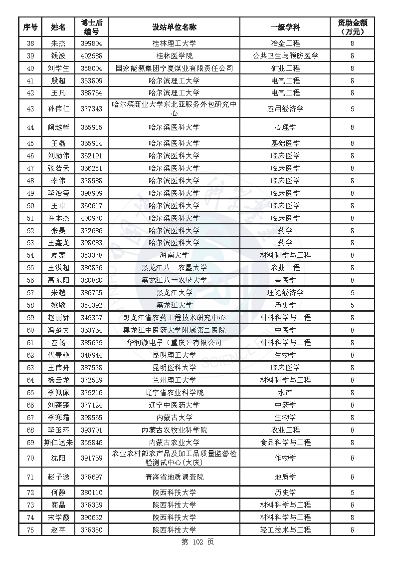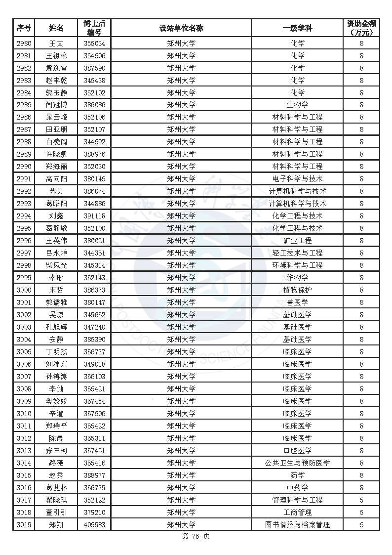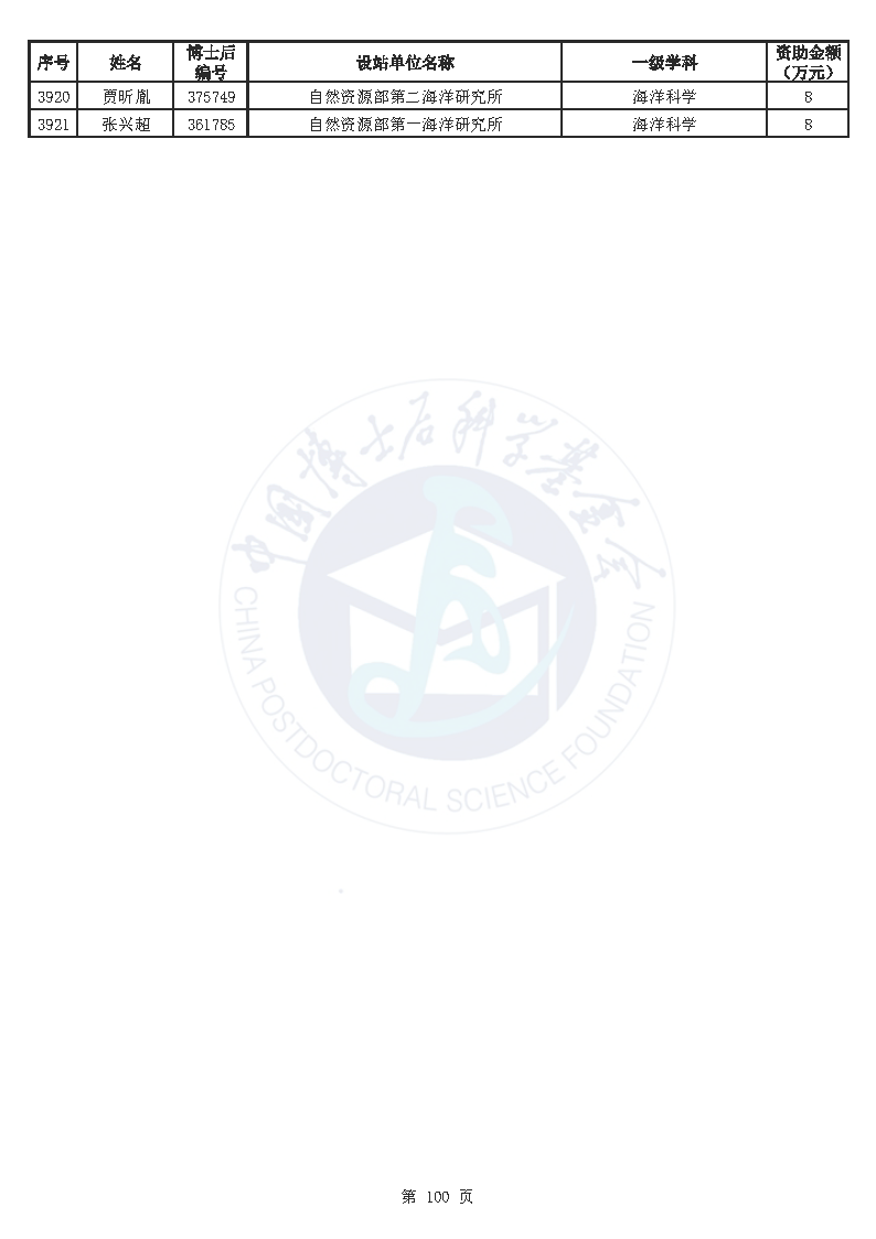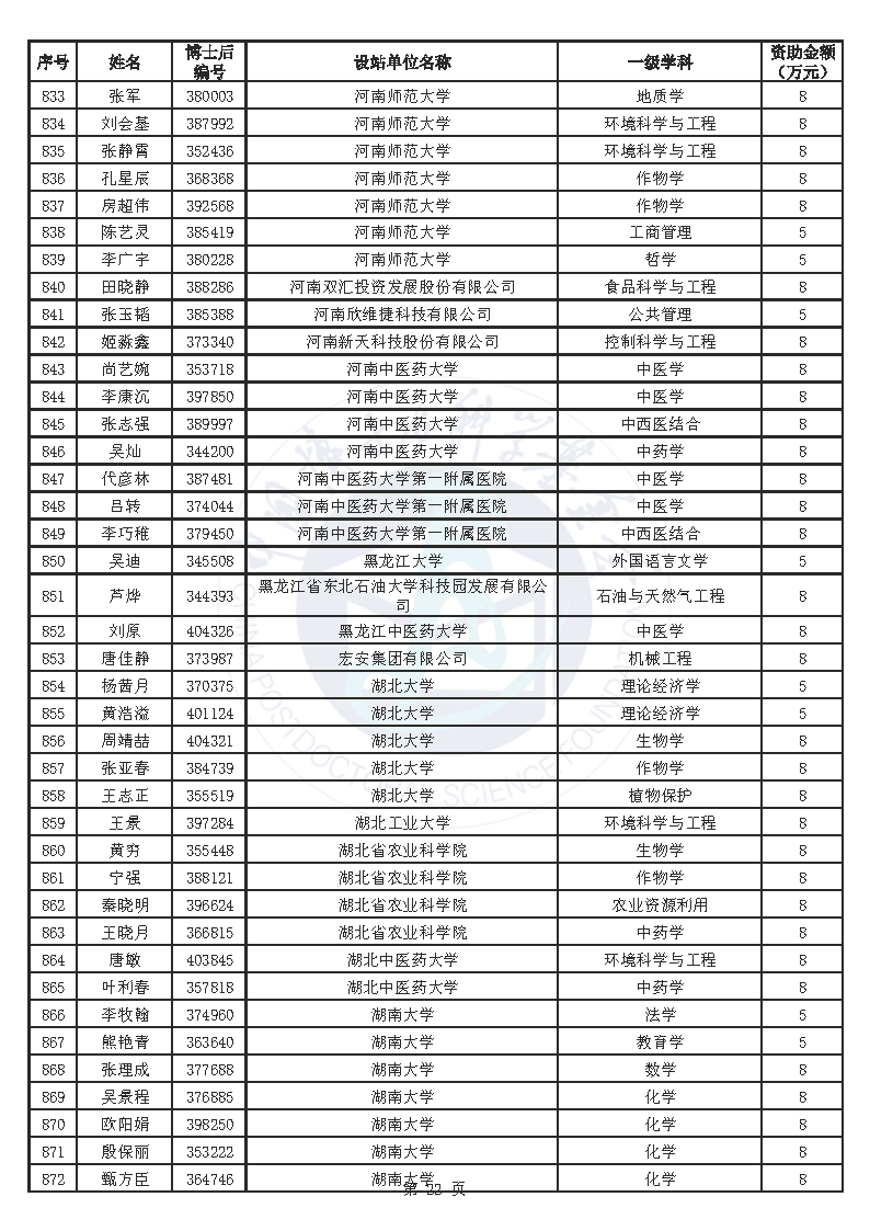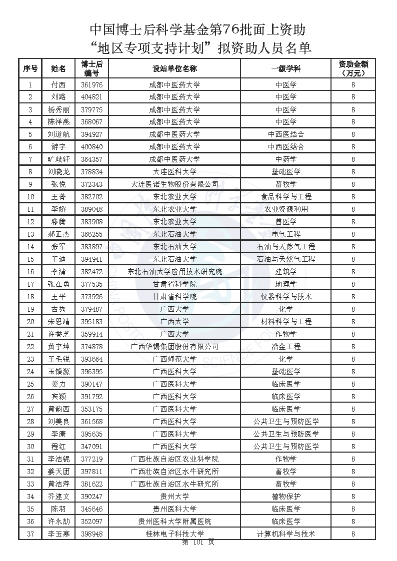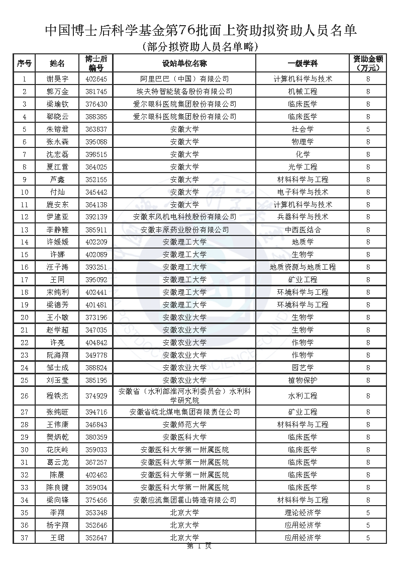 附件:中国博士后科学基金第76批面上资助拟资助人员名单(部分拟资助人员名单略)
