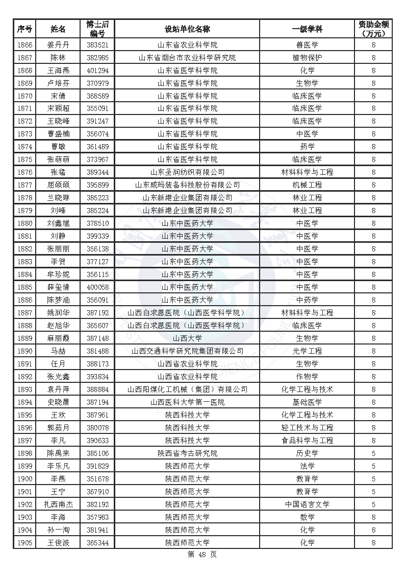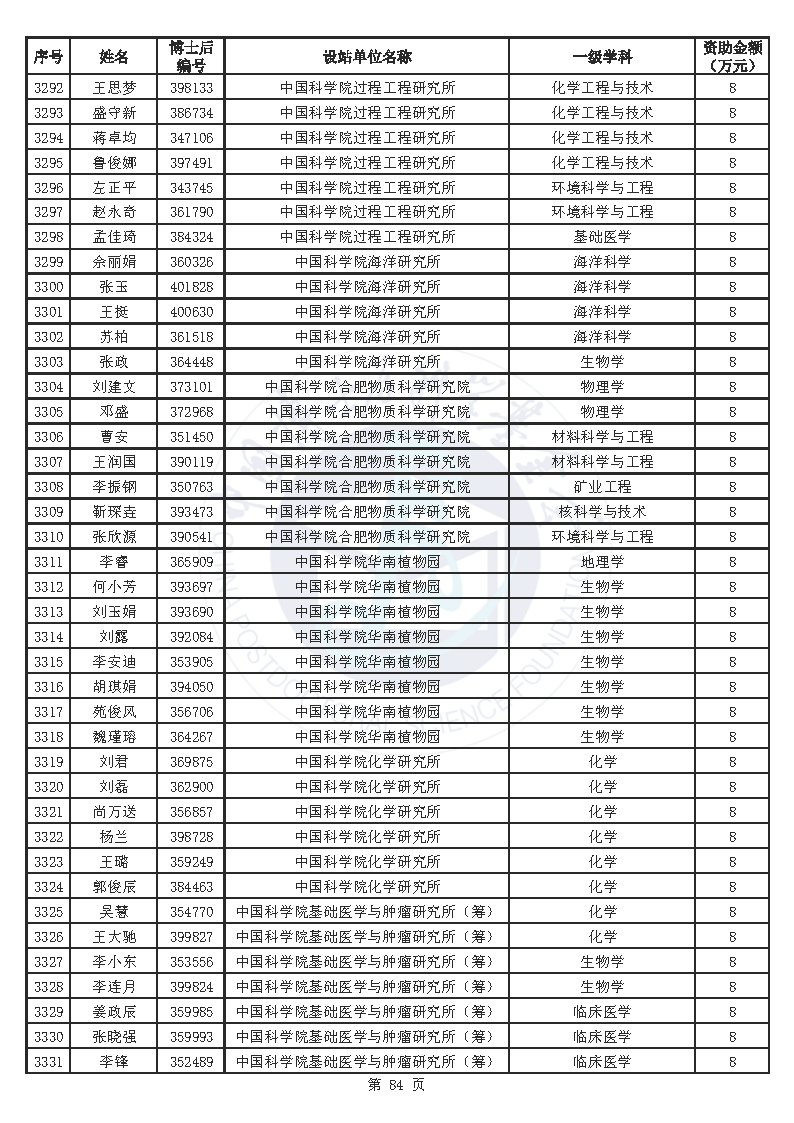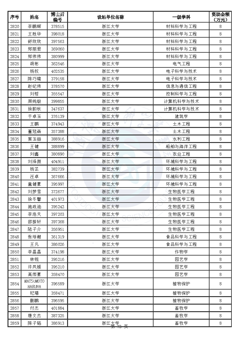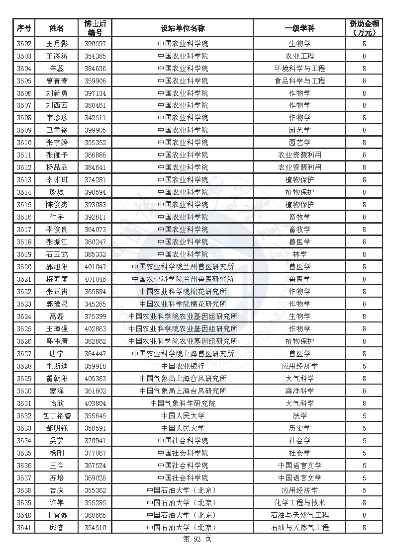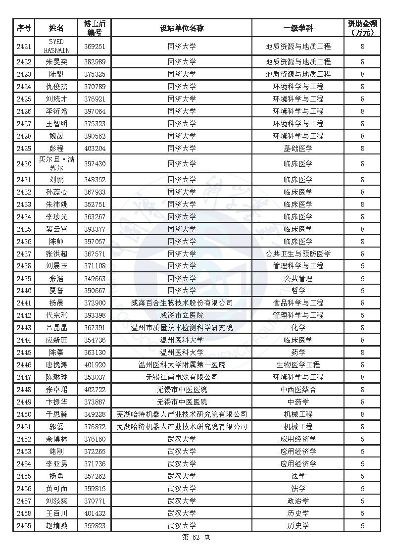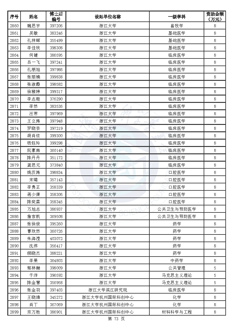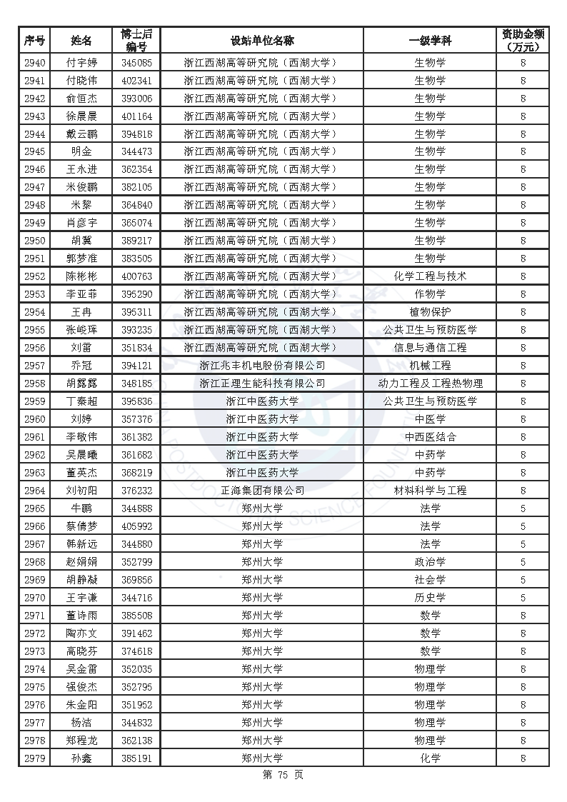 附件:中国博士后科学基金第76批面上资助拟资助人员名单(部分拟资助人员名单略)