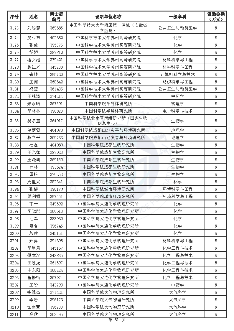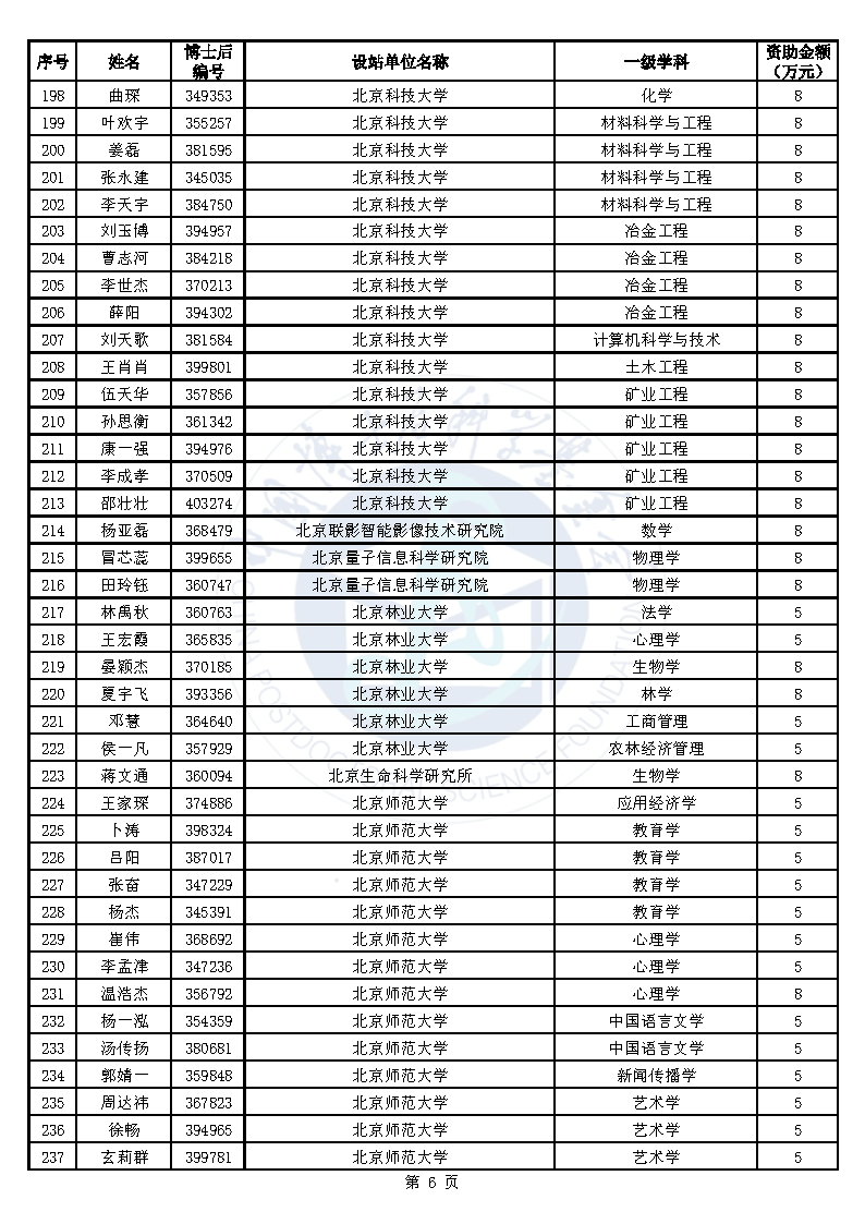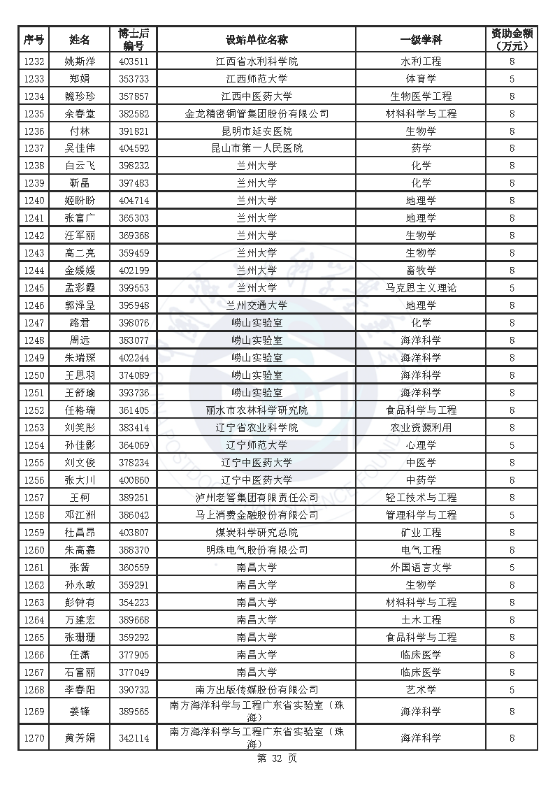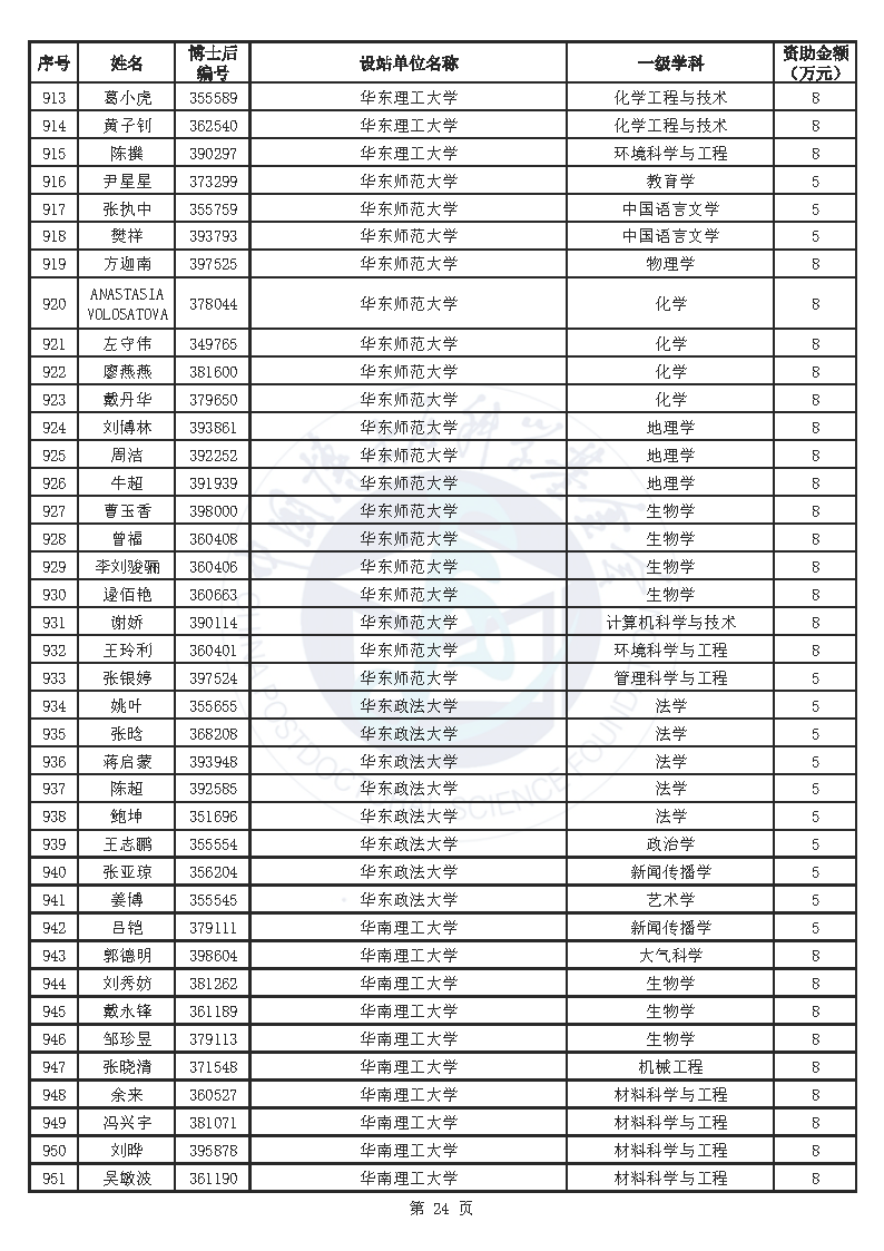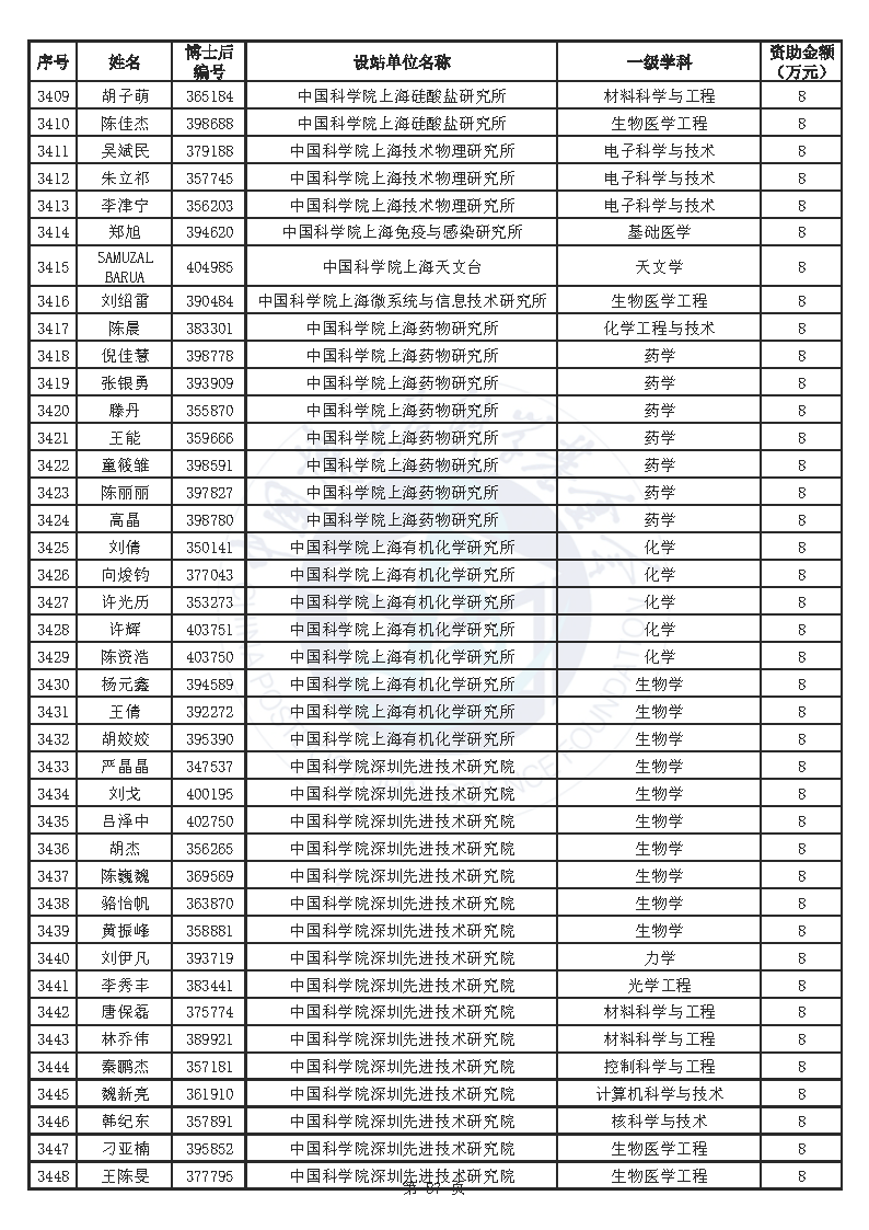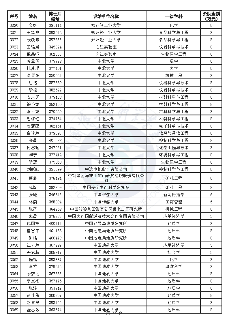 附件:中国博士后科学基金第76批面上资助拟资助人员名单(部分拟资助人员名单略)