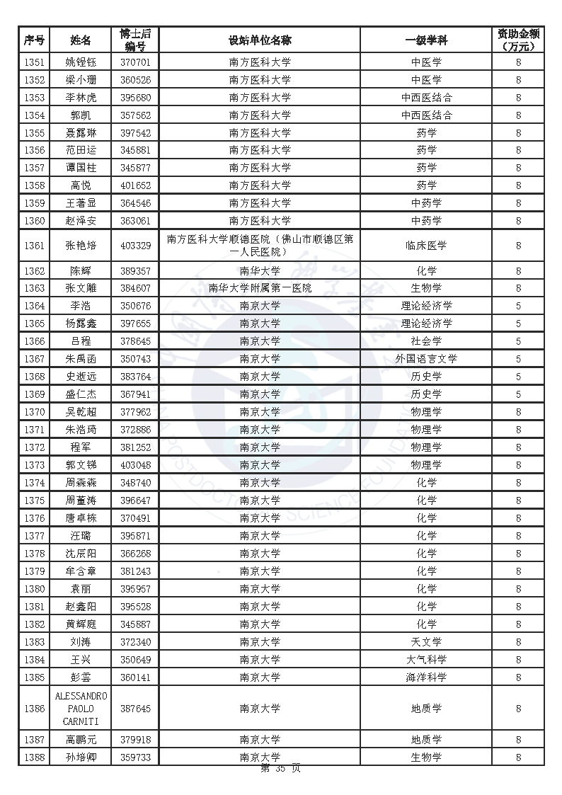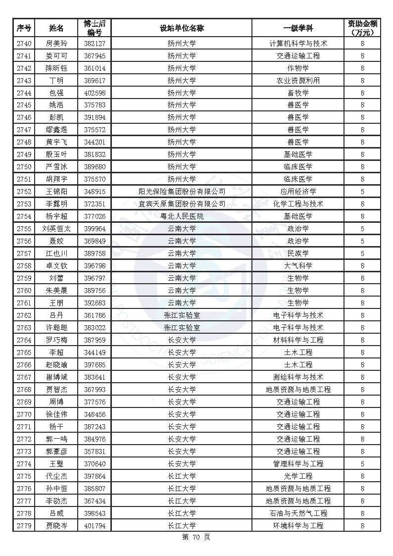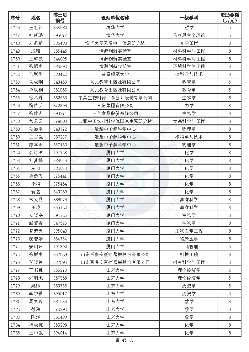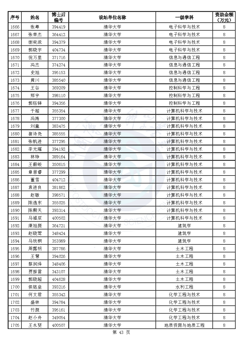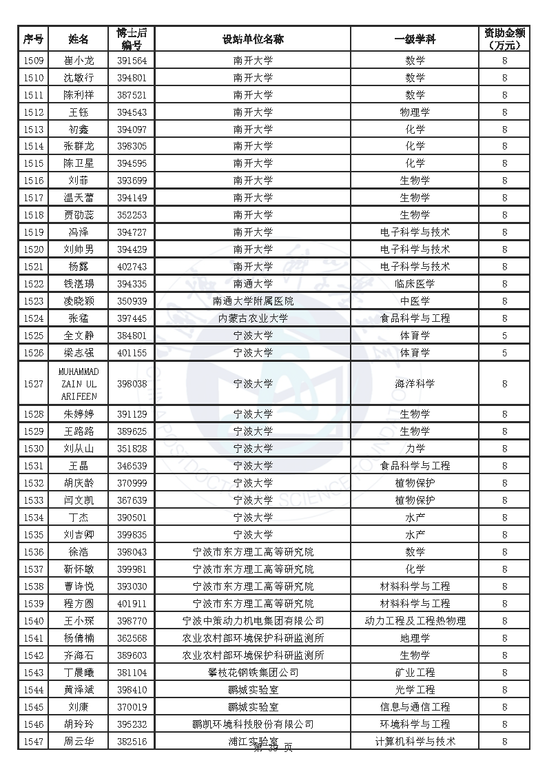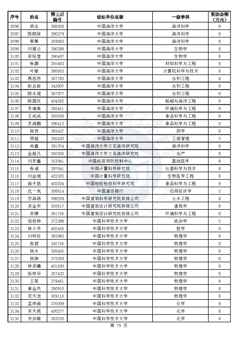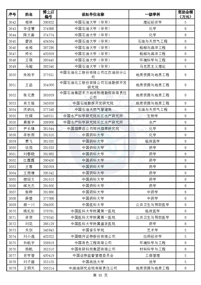 附件:中国博士后科学基金第76批面上资助拟资助人员名单(部分拟资助人员名单略)