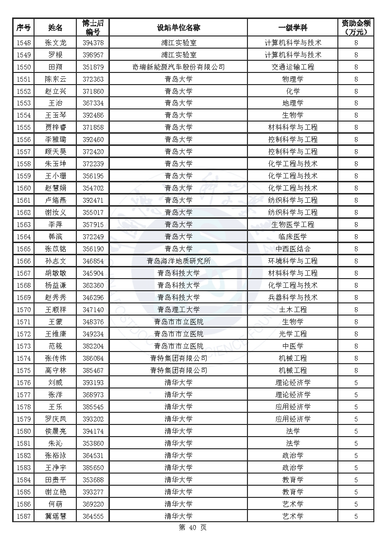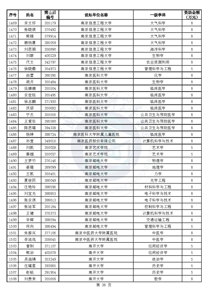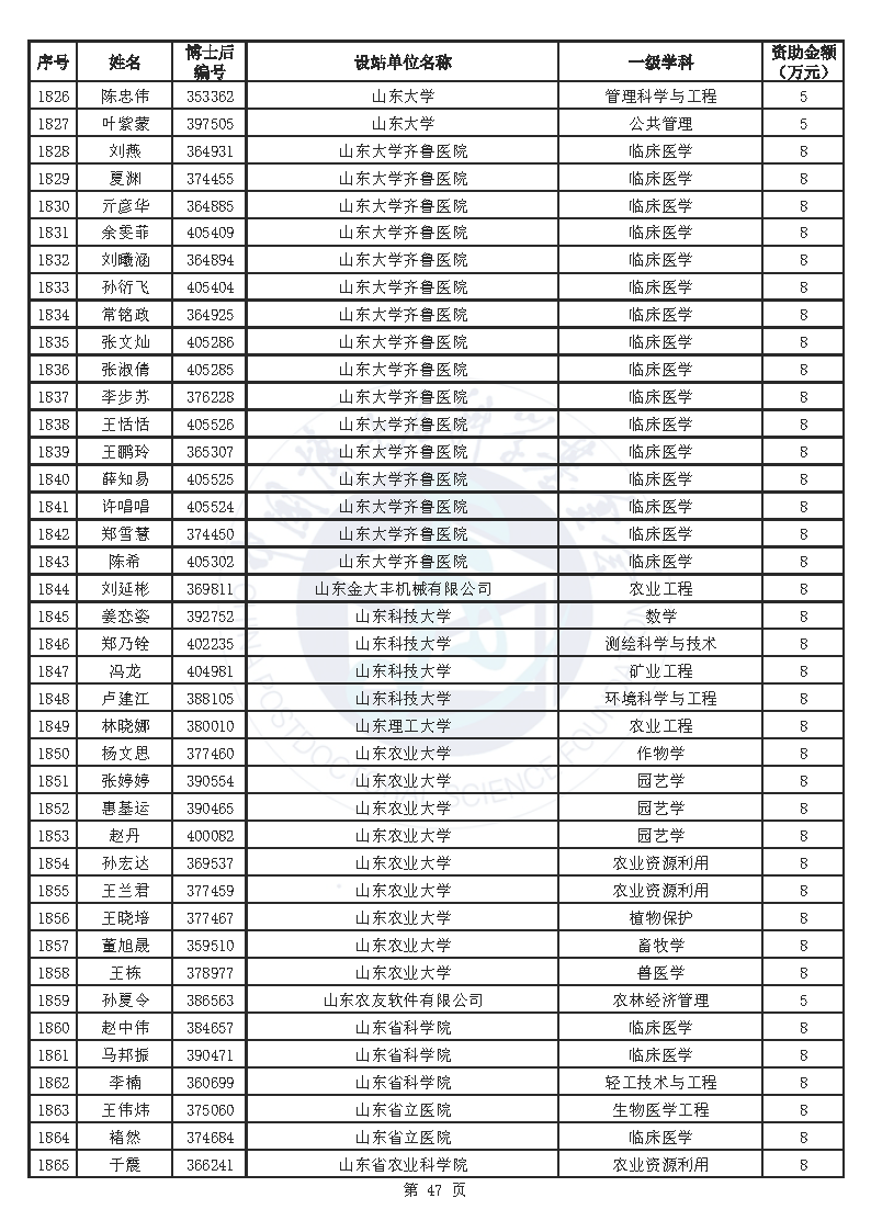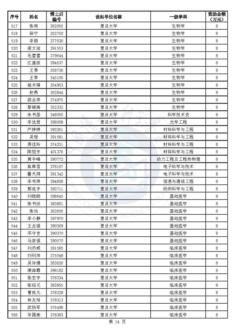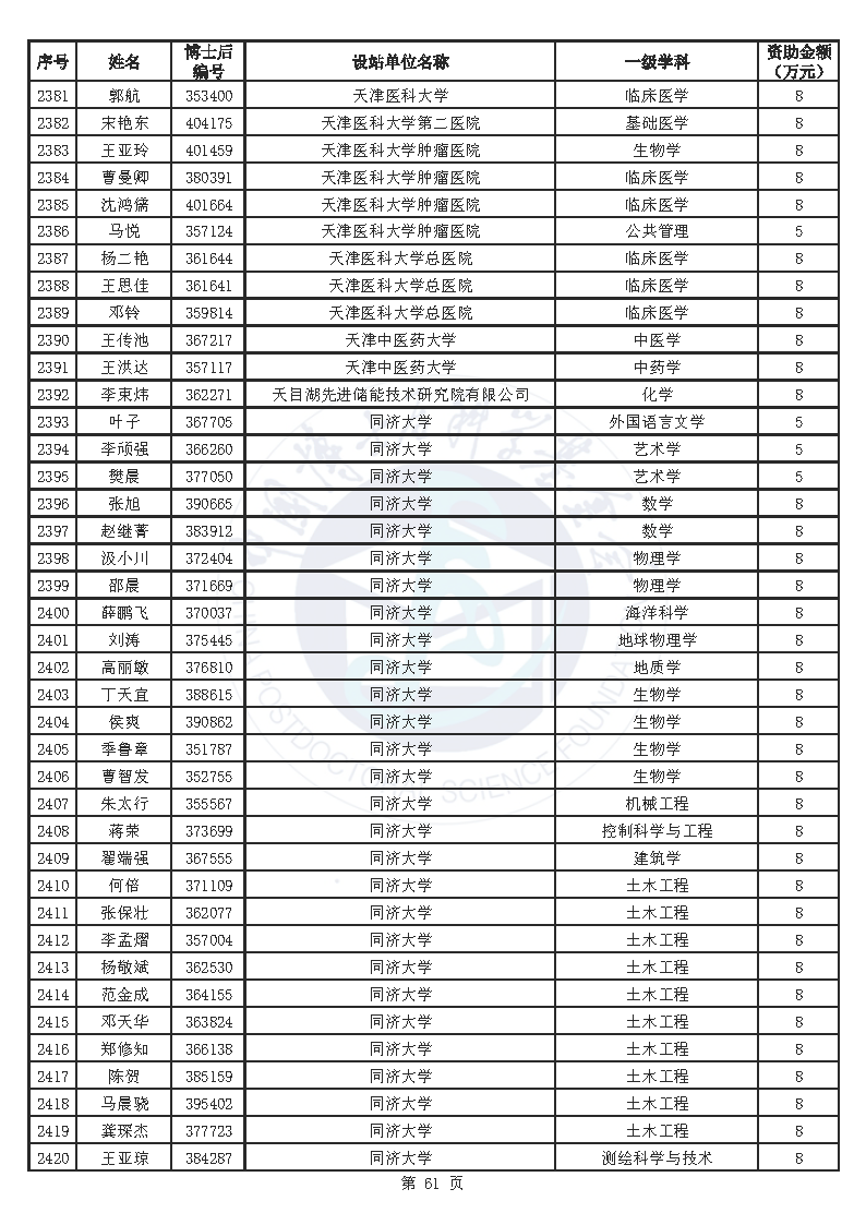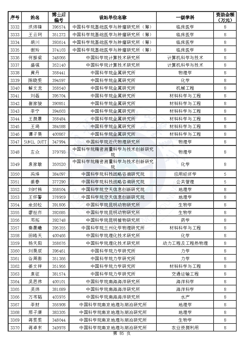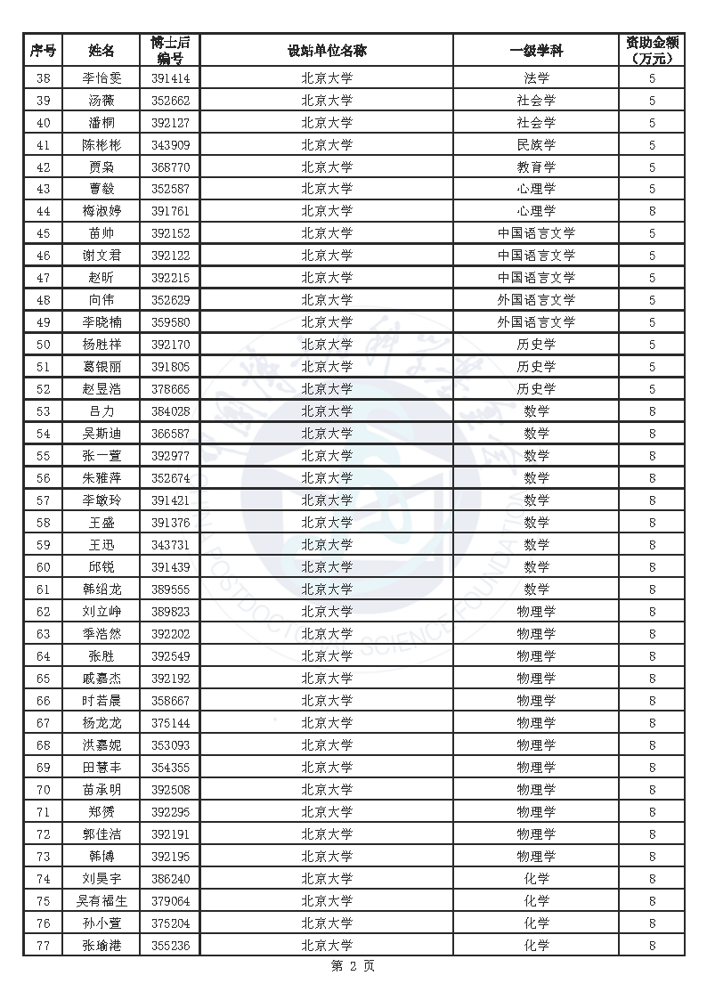 附件:中国博士后科学基金第76批面上资助拟资助人员名单(部分拟资助人员名单略)