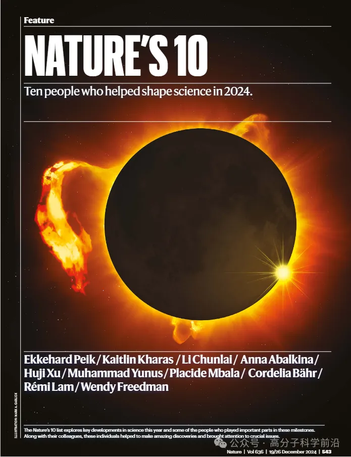 2024年12月9日,《自然》公布了2024年度十大人物榜单(Nature's 10)——这一榜单旨在选出十位在这一年重大科学事件中占有一席之地的人物。