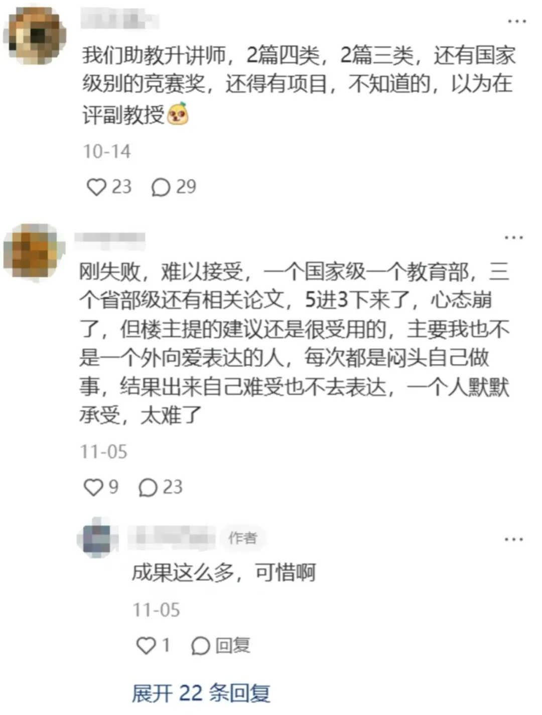 而在评论区中被反复提及的职称评审、非升即走更如一把达摩克利斯之剑,悬于高校教师的头顶,令人倍感压力。