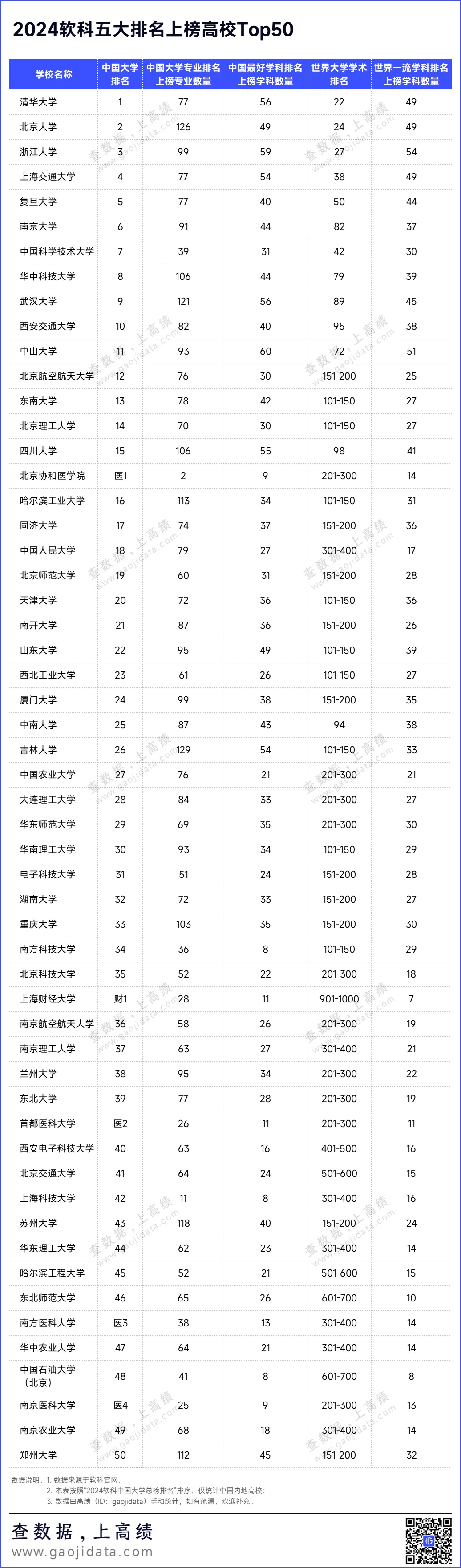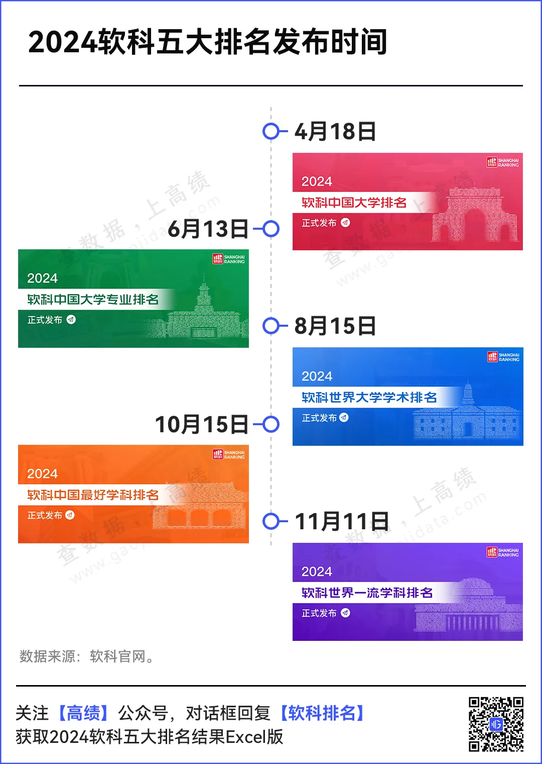 2024年,高等教育评价专业机构软科共发布五大排名: