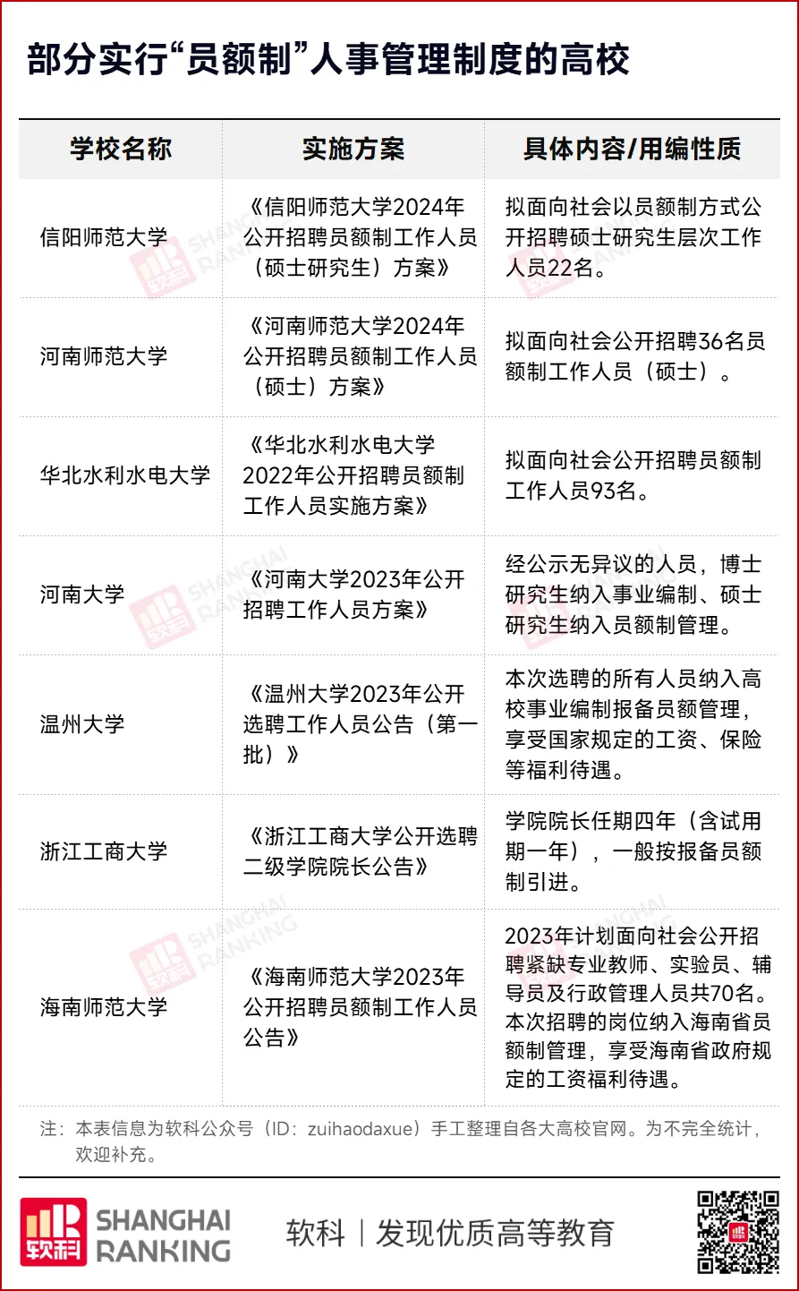 目前,全国已有多所高校实施“员额制”管理。