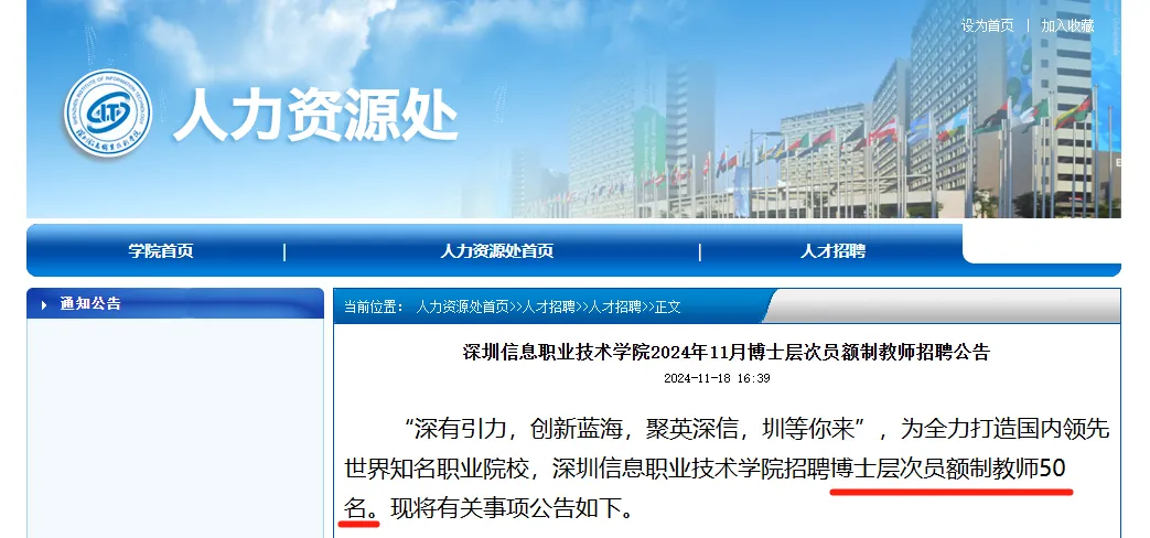 日前,深圳信息职业技术学院发布博士层次员额制教师招聘公告,计划招聘50名博士层次教师,全部都是“员额制”。