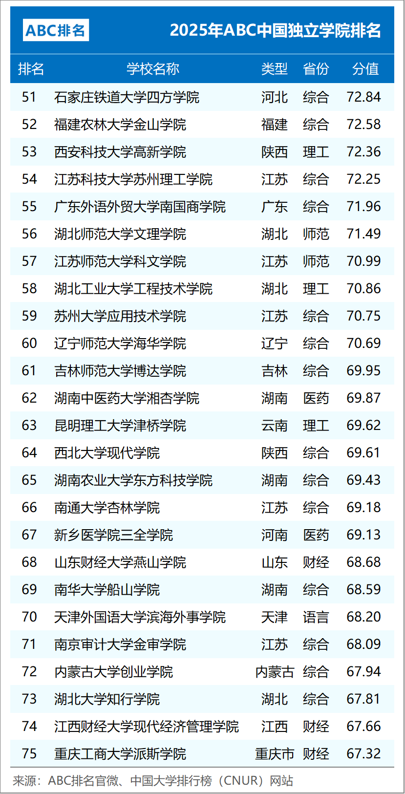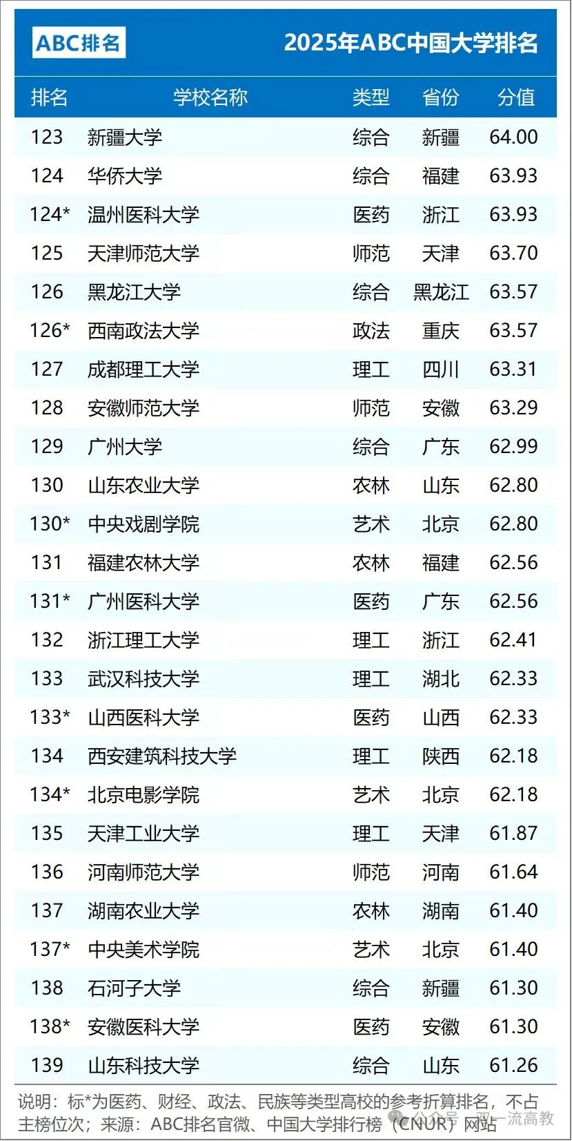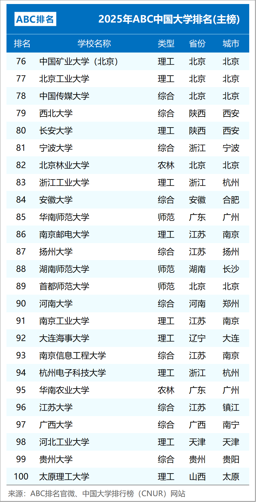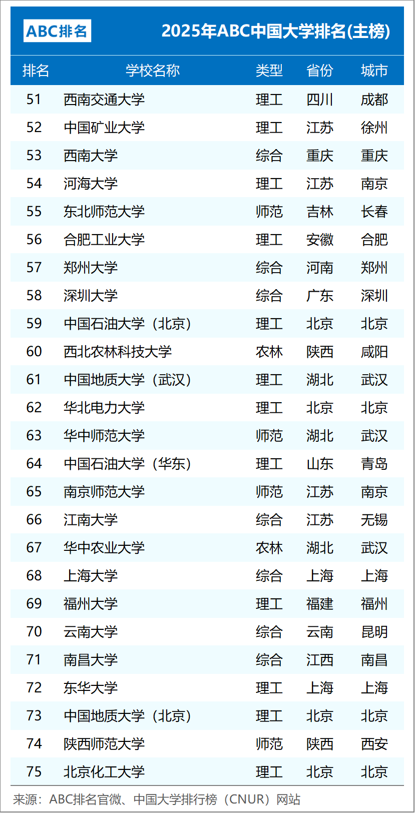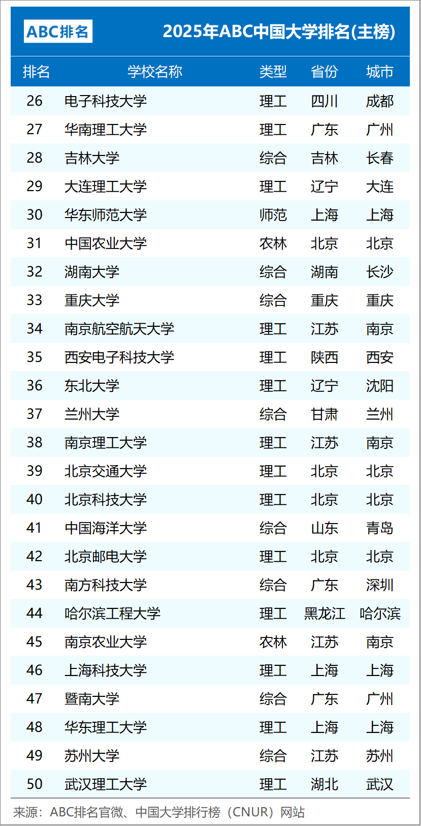 组图2:2025年ABC中国大学排名(公办完整版)