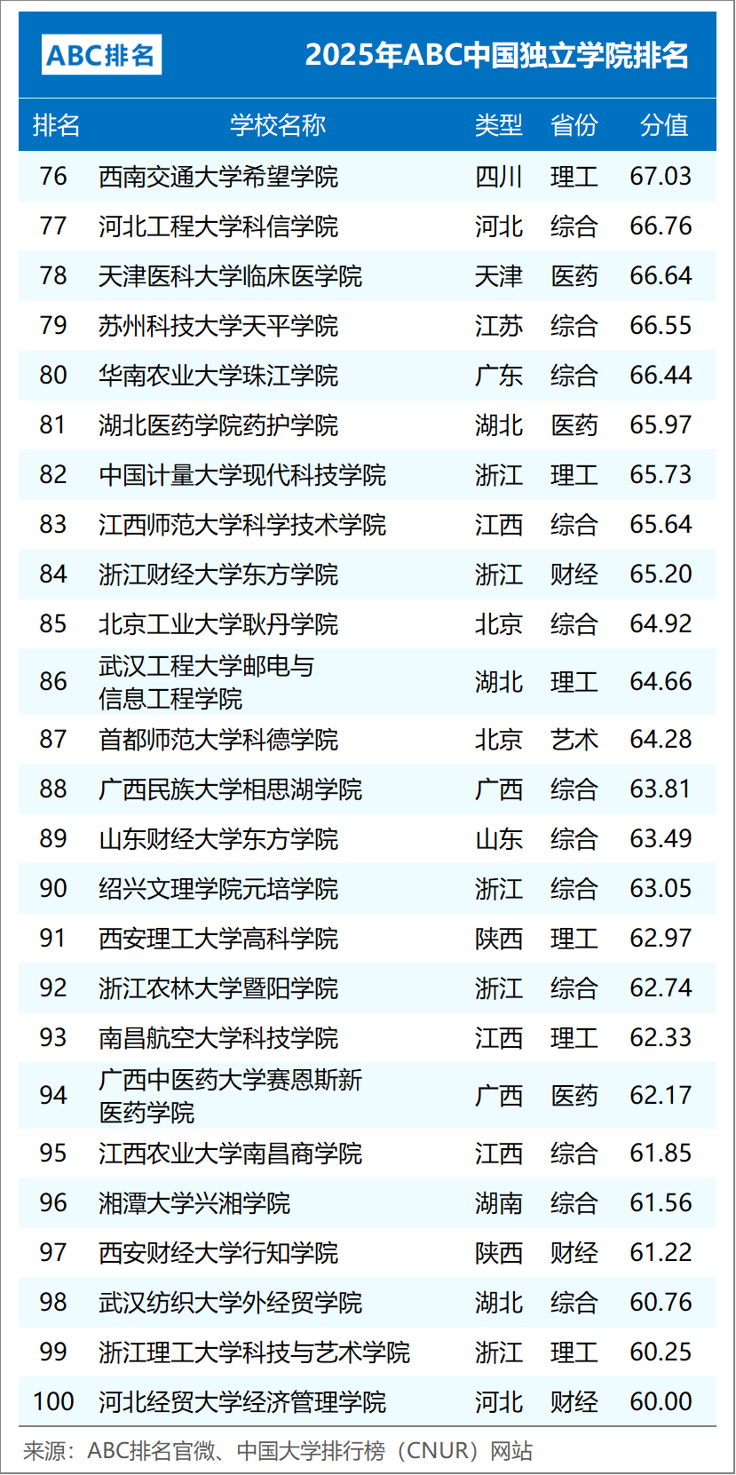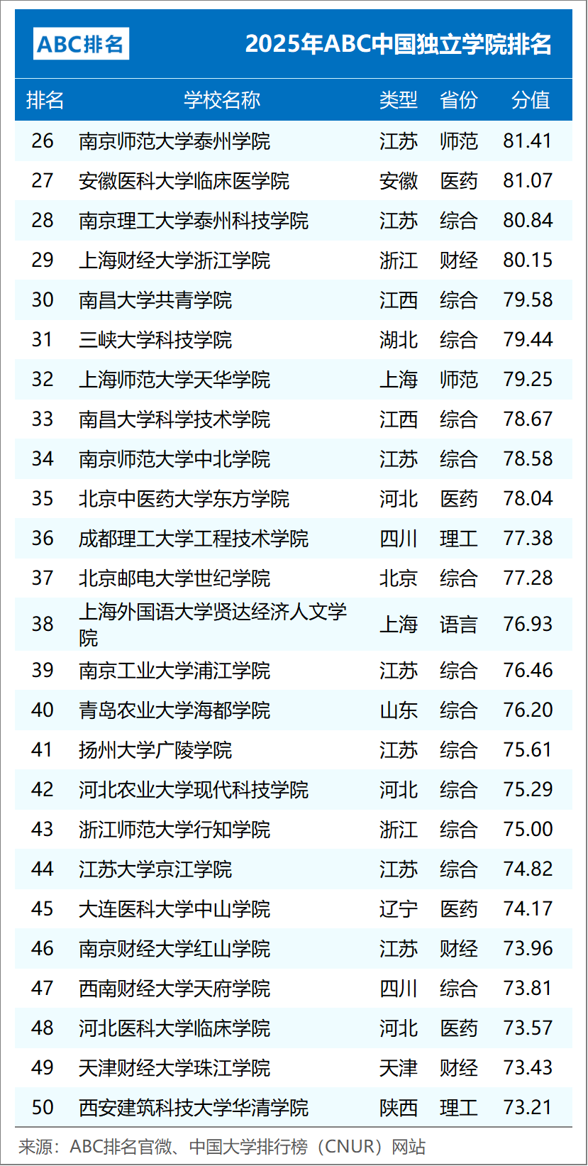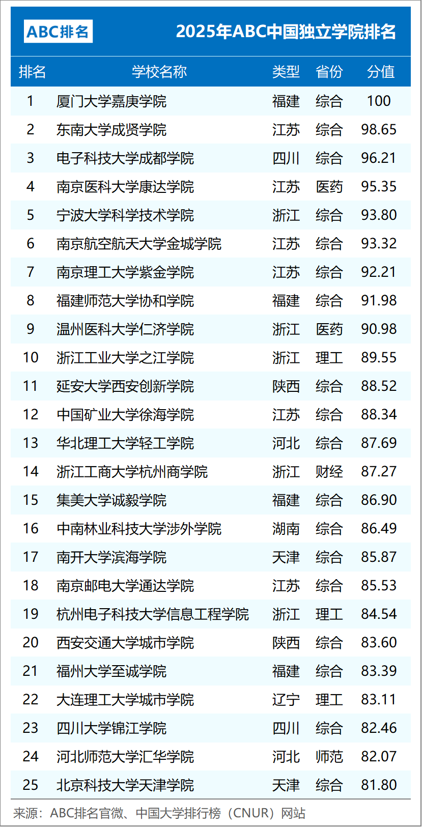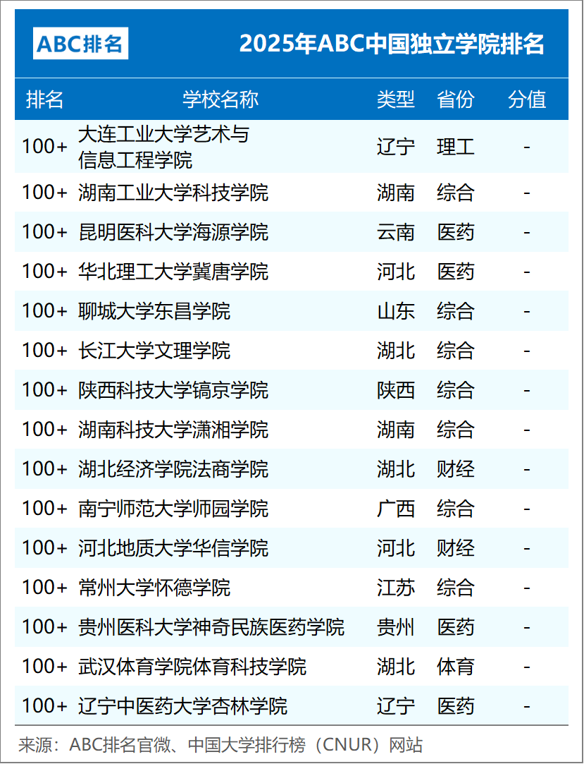 组图5:2025年ABC中国独立学院排名