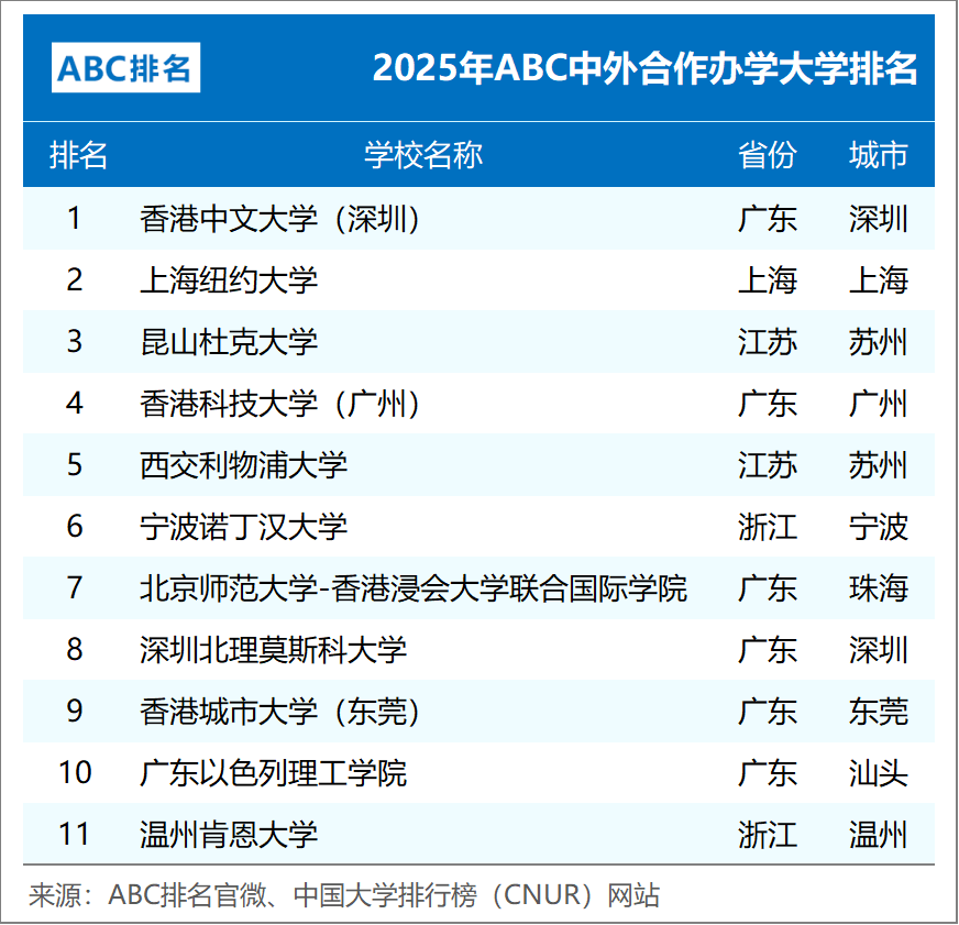 组图6:2025年ABC中外合作办学大学排名
