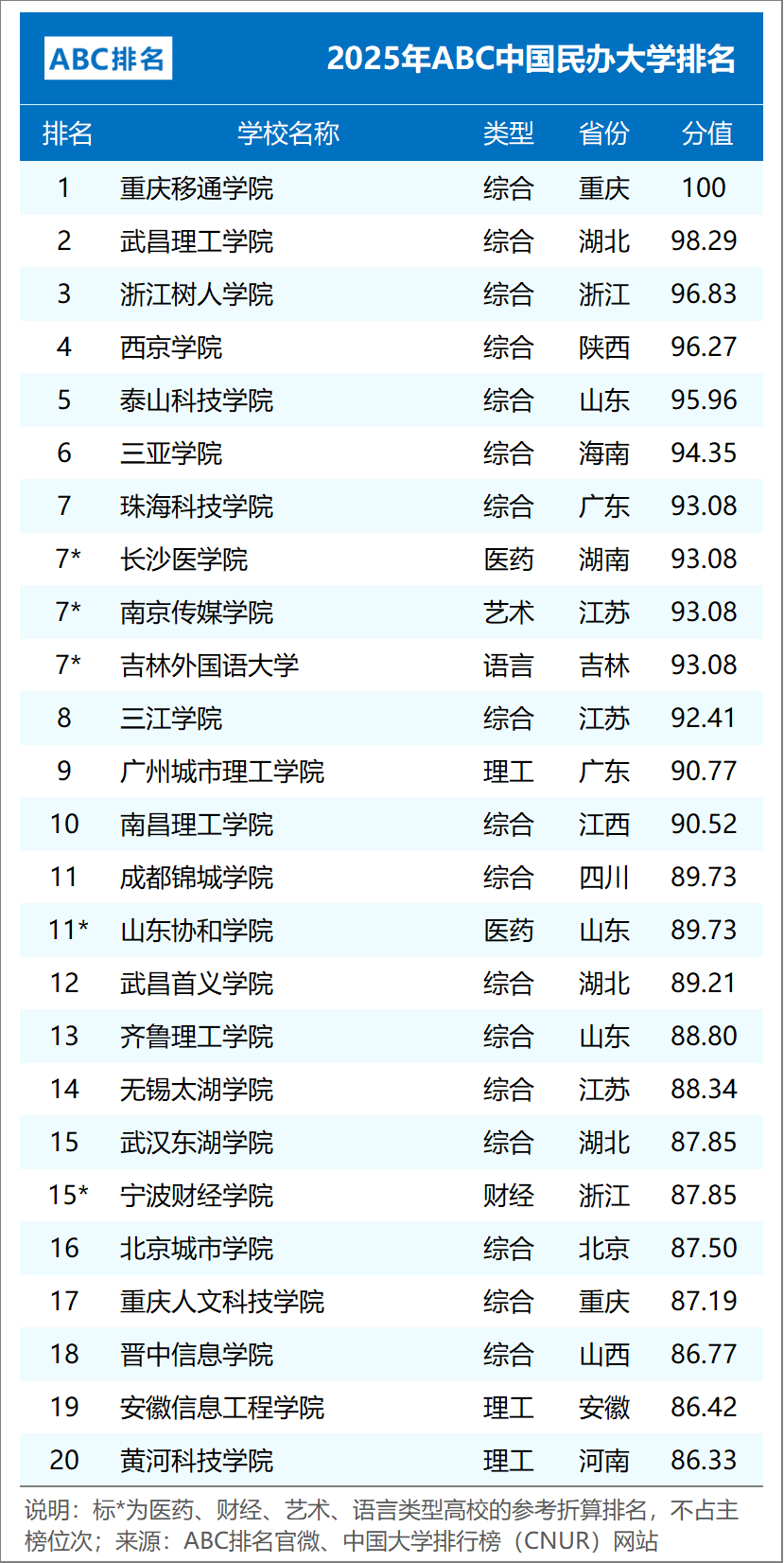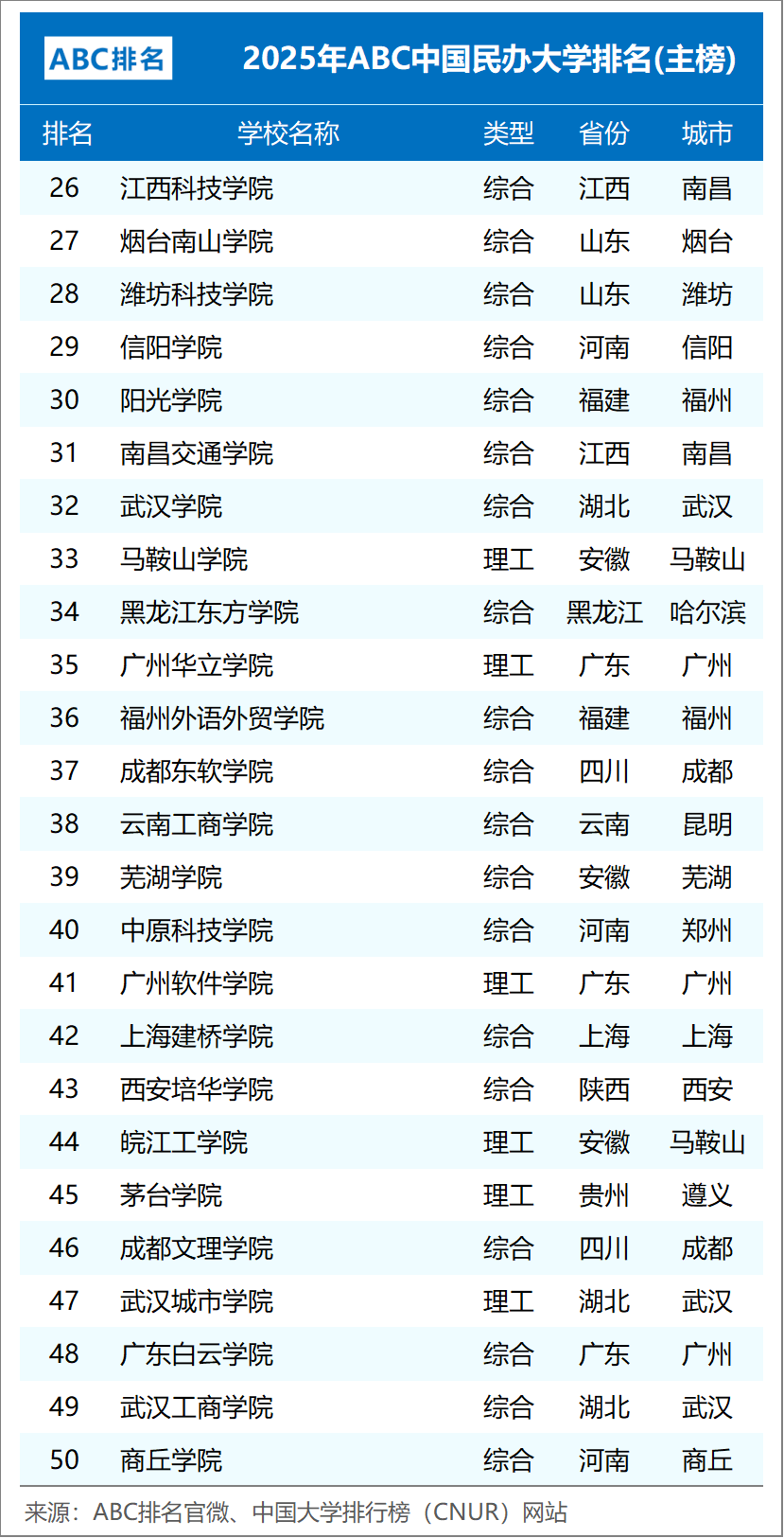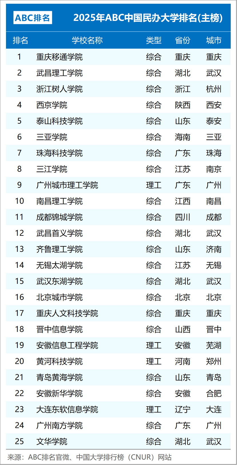 组图3:2025年ABC中国民办大学排名(主榜TOP50)