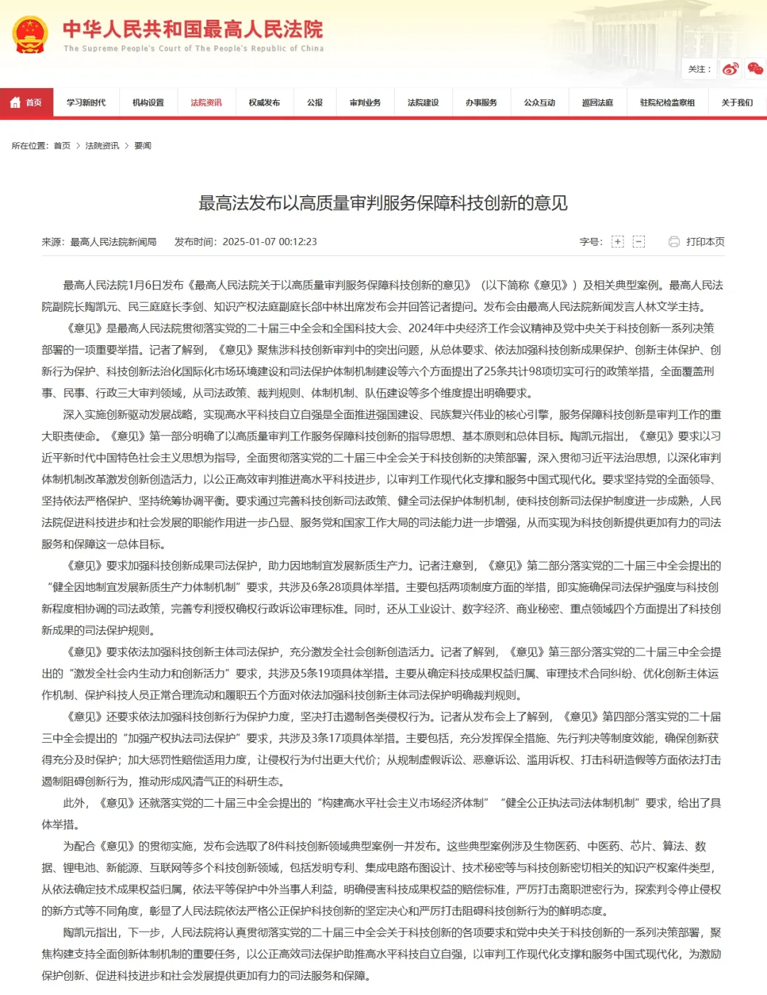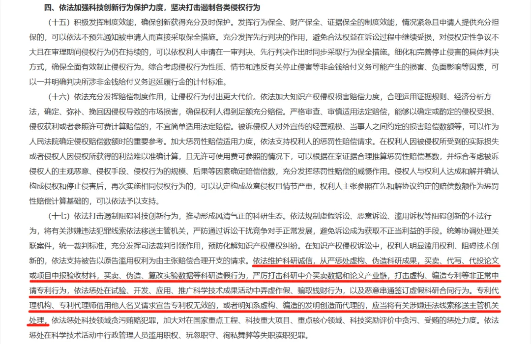 根据最高人民法院官网,最高人民法院于2025年1月6日下午举行了《最高人民法院关于以高质量审判服务保障科技创新的意见》新闻发布会。在新闻发布会上,最高法发布了《最高人民法院关于以高质量审判服务保障科技创新的意见》及人民法院保护科技创新典型案例,并回答记者提问。据最高人民法院新闻局的报道:《意见》是最高人民法院贯彻落实党的二十届三中全会和全国科技大会、2024年中央经济工作会议精神及党中央关于科技创新一系列决策部署的一项重要举措。《意见》聚焦涉科技创新审判中的突出问题,从总体要求、依法加强科技创新成果保护、创新主体保护、创新行为保护、科技创新法治化国际化市场环境建设和司法保护体制机制建设等六个方面提出了25条共计98项切实可行的政策举措,全面覆盖刑事、民事、行政三大审判领域,从司法政策、裁判规则、体制机制、队伍建设等多个维度提出明确要求。深入实施创新驱动发展战略,实现高水平科技自立自强是全面推进强国建设、民族复兴伟业的核心引擎,服务保障科技创新是审判工作的重大职责使命。最高法官网上也发布了《最高人民法院关于以高质量审判服务保障科技创新的意见》的全文。尽管这份文件的重点在维护专利于科技创新,但在《最高人民法院关于以高质量审判服务保障科技创新的意见》第四部分依法加强科技创新行为保护力度,坚决打击遏制各类侵权行为第十七条中,最高法仍表示:依法维护科研诚信,从严惩处虚构、伪造科研成果,买卖、代写、代投论文或项目申报验收材料,买卖、伪造、篡改实验数据等科研造假行为,严厉打击科研中介买卖数据和论文产业链,打击虚构、编造专利等非正常申请专利行为,依法惩处在试验、开发、应用、推广科学技术成果活动中弄虚作假、骗取钱财行为,以及恶意串通签订虚假科研合同行为。专利代理机构、专利代理师借用他人名义请求宣告专利权无效的,或者明知系虚构、编造的发明创造而代理的,应当将有关涉嫌违法线索移送主管机关处理。想必大家都清楚,目前并没有明确的针对学术不端的立法,并且在过往的法院判决文书中,大家也可以发现,我们目前没有针对论文产业链的处罚规定。在2020-2022年的30个论文代写相关案件的裁判文书。而在判决书中对于代写合同,法院的判决多为“违背公序良俗,协议无效”。这说明论文代投代写问题目前在法律上仅局限在公序良俗上。在大多数人的眼中,这种程度违规对于打击论文代写代投产业链还是欠缺一定力道的。当前最高法在《意见》中明确将“依法维护科研诚信”“严厉打击科研中介买卖数据和论文产业链”或许意味着在不远的将来,我们也许能见到在最高法推动下的针对性打击科研数据、论文买卖的法条、法律规定或判决。