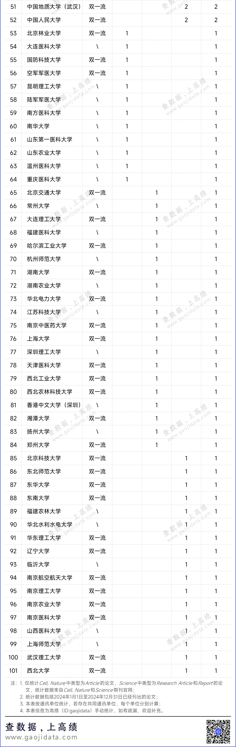 2024年,101所内地高校,顶刊发文!