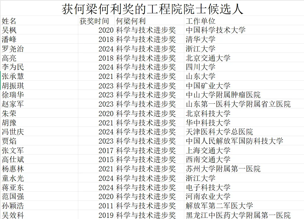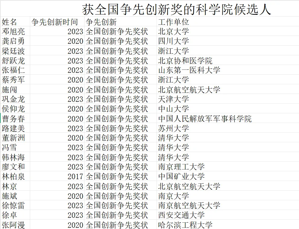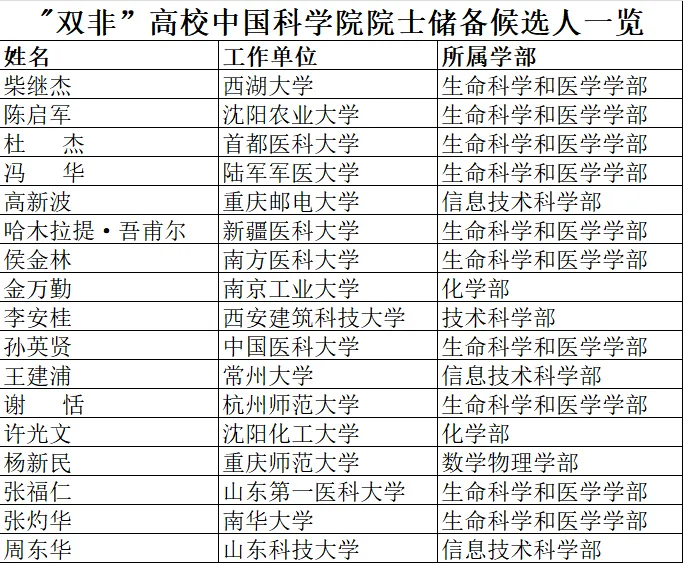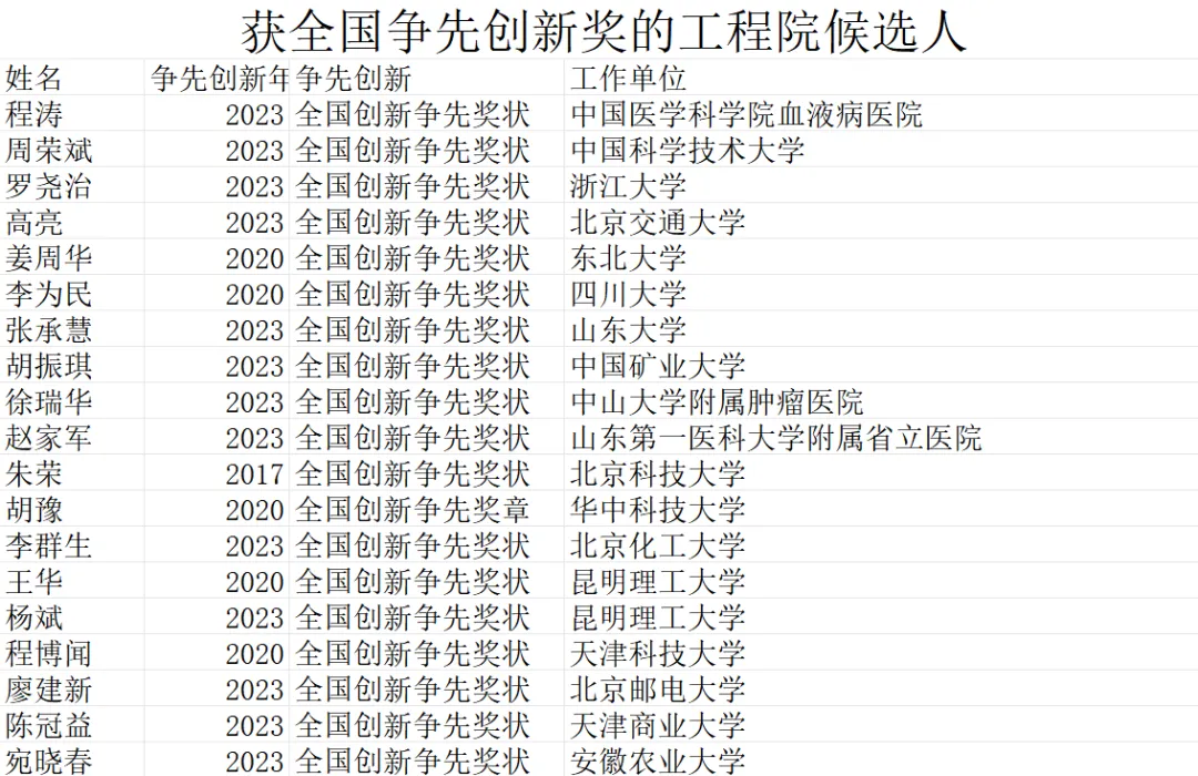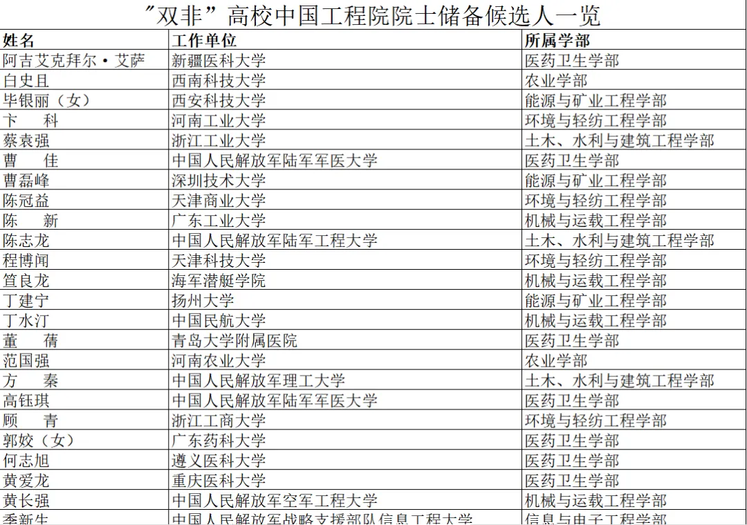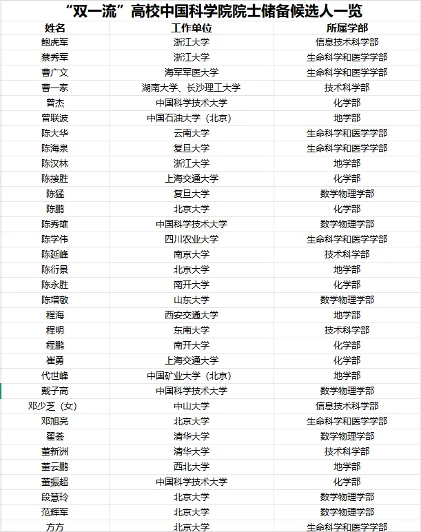 截图仅为部分名单,详细名单关注公众号回复“院士”获取