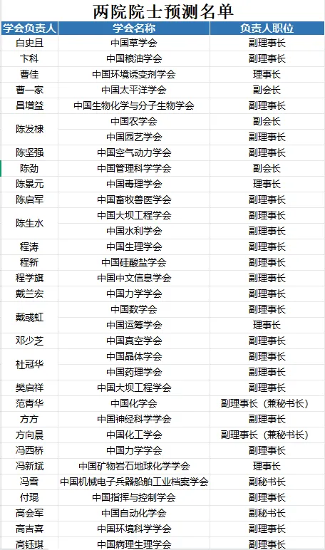 本文汇总了中国科协领导的全国性学术团体的学会负责人,看一看哪些学者有望在新一轮增选中脱颖而出,冲击“院士”头衔。