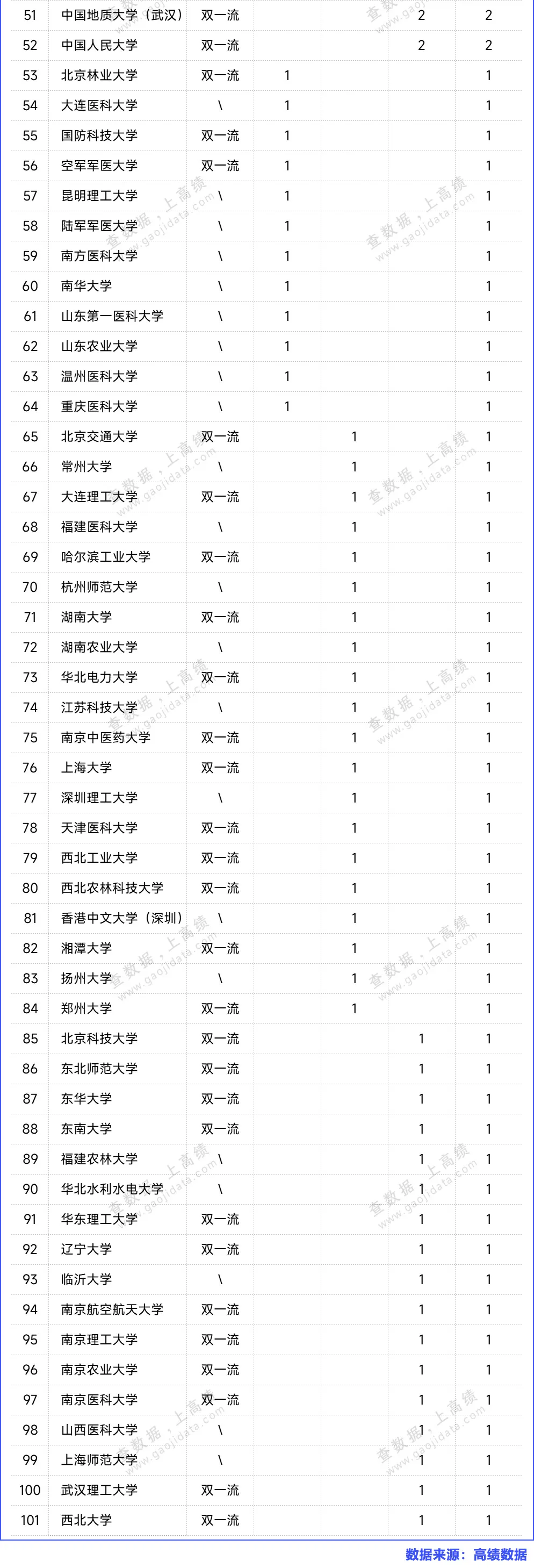 1:共有101所高校在CNS期刊成功刊出论文。其中,中国科学院大学发文数最多,全年发文54篇。