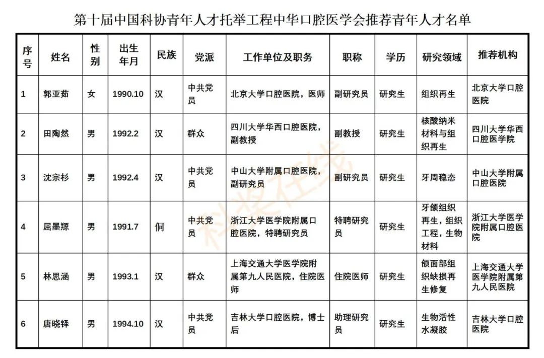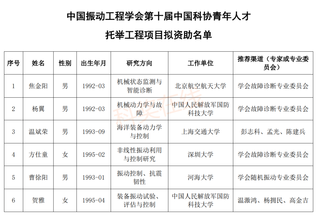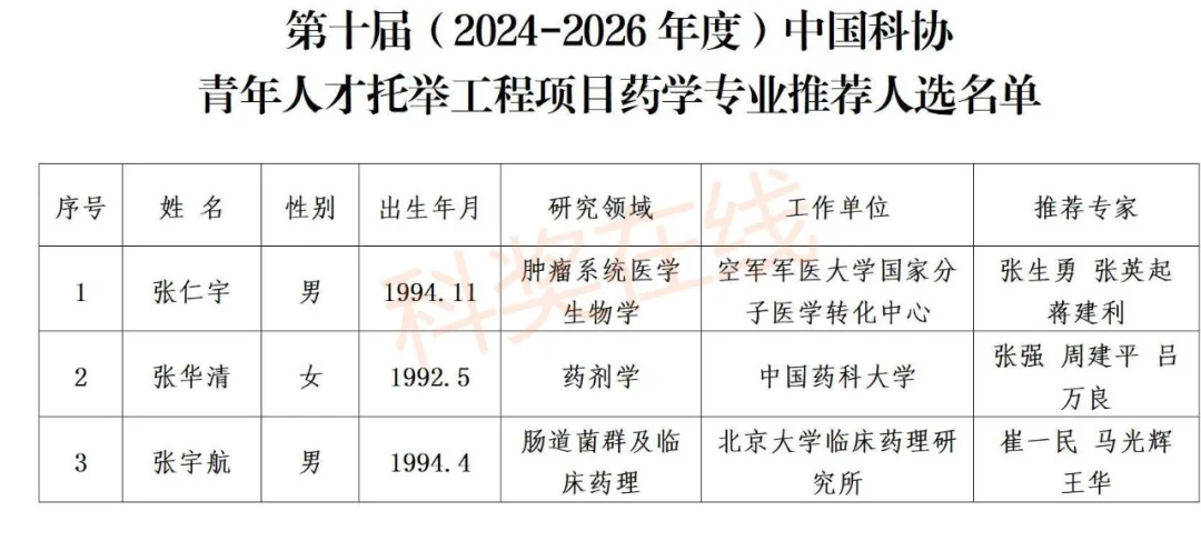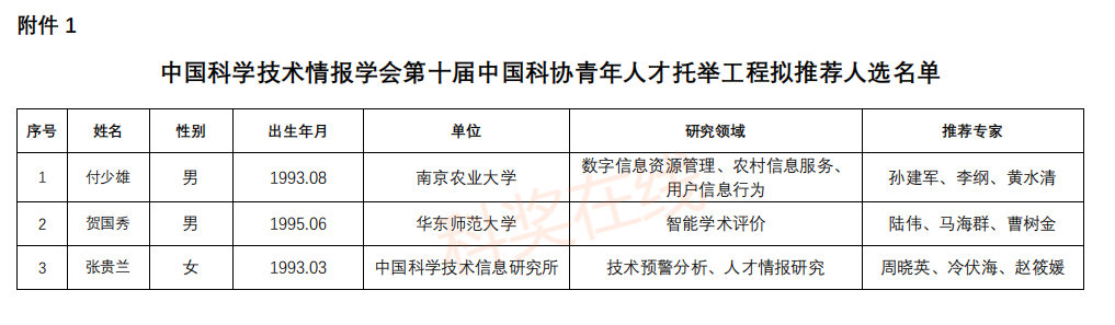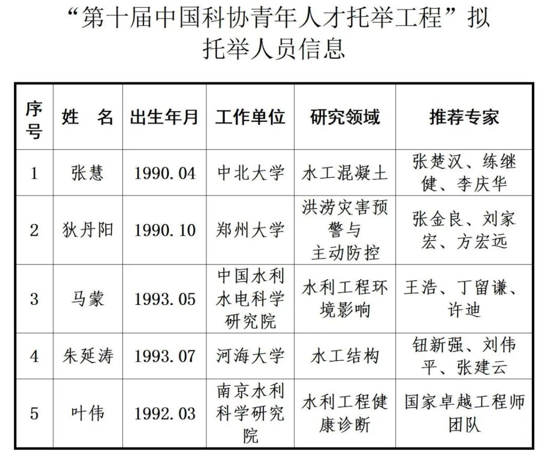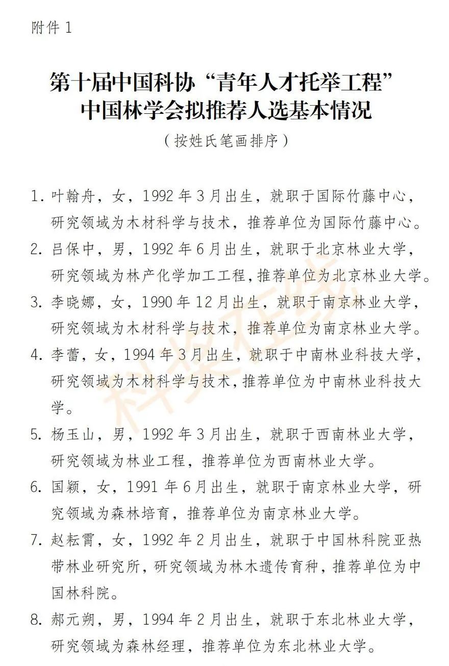 第十届中国科协“青年人才托举工程”拟推荐人员名单汇总