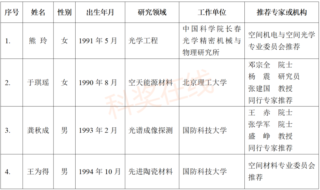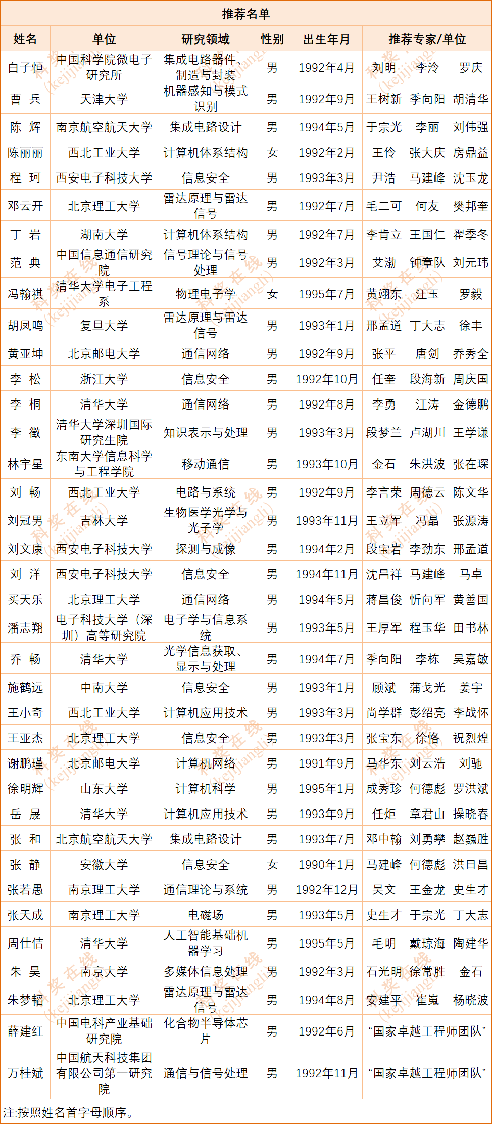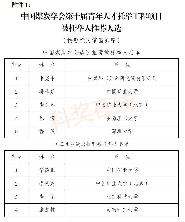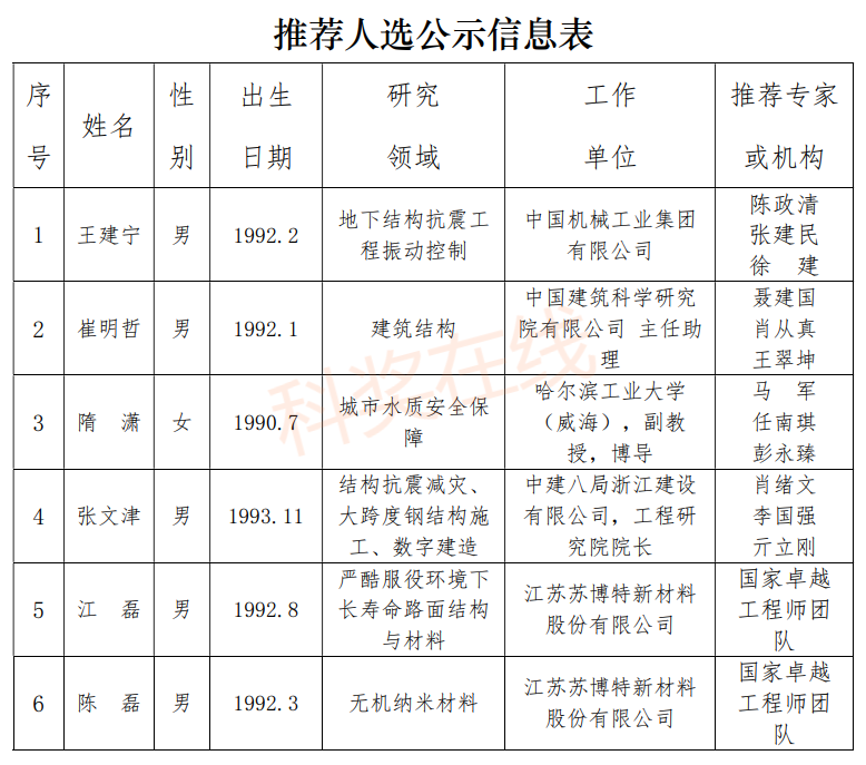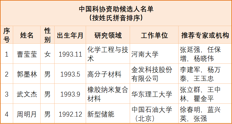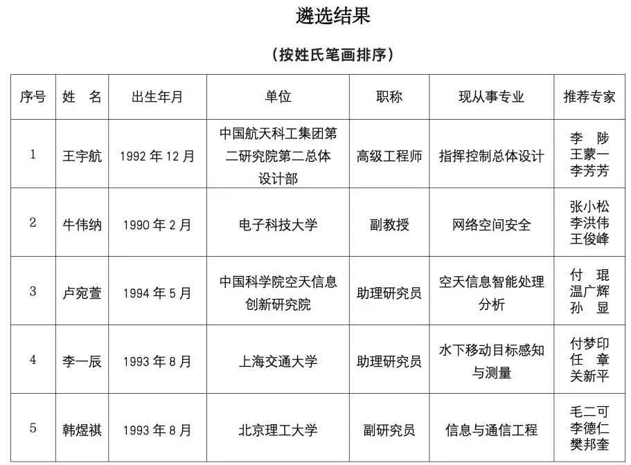 第十届中国科协“青年人才托举工程”拟推荐人员名单汇总