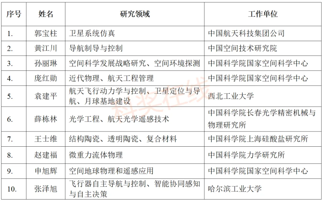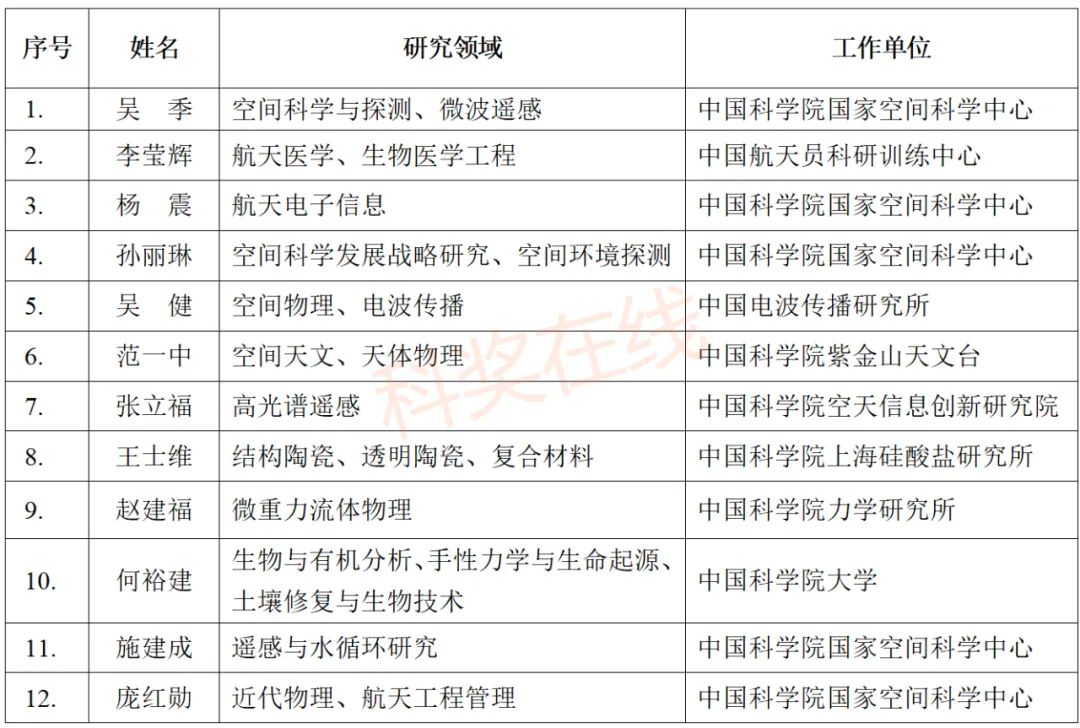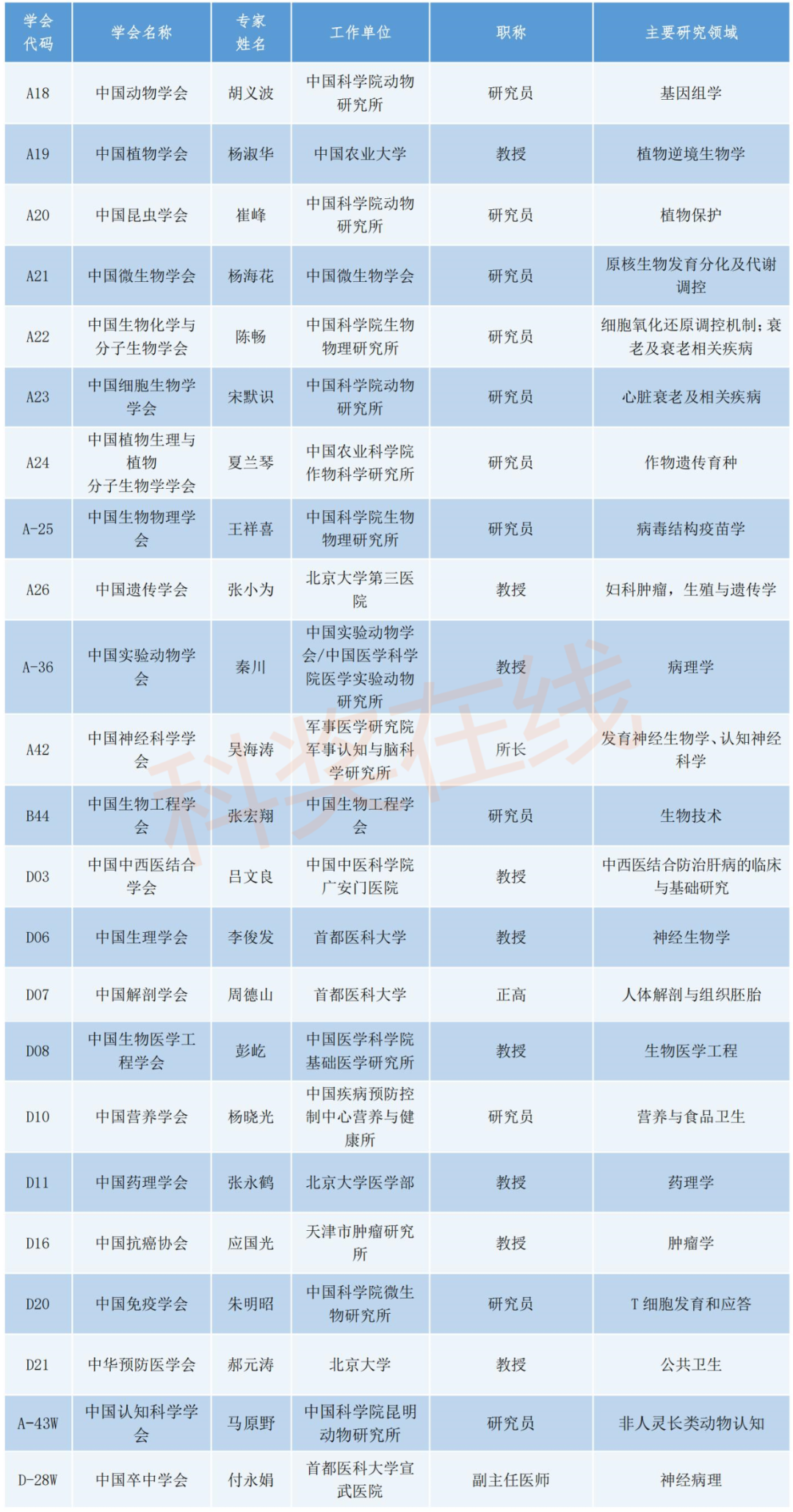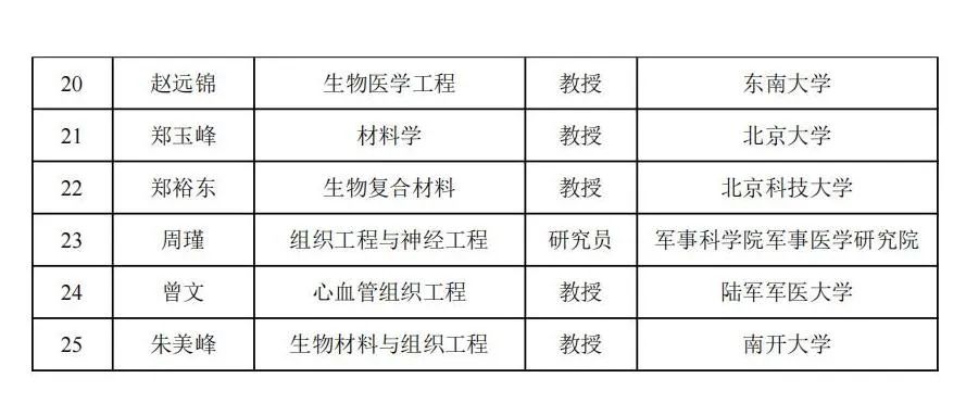 中国农学会 (5人) 中国物理学会(2人) 中国康复医学会(2人) 中国大坝工程学会(5人)