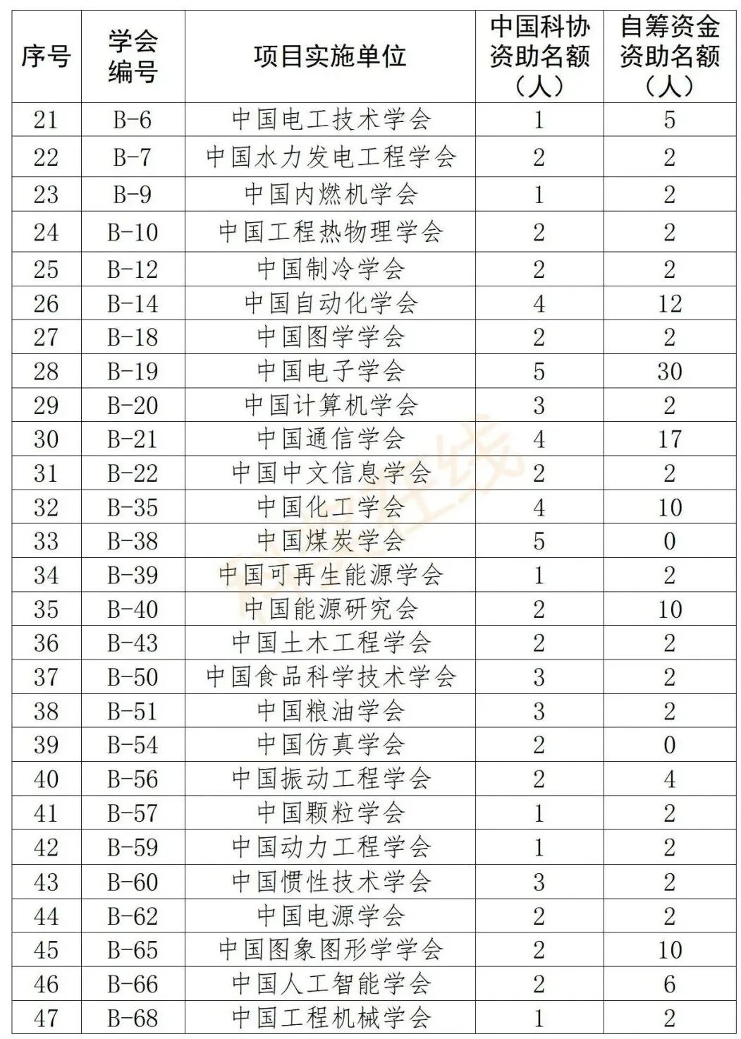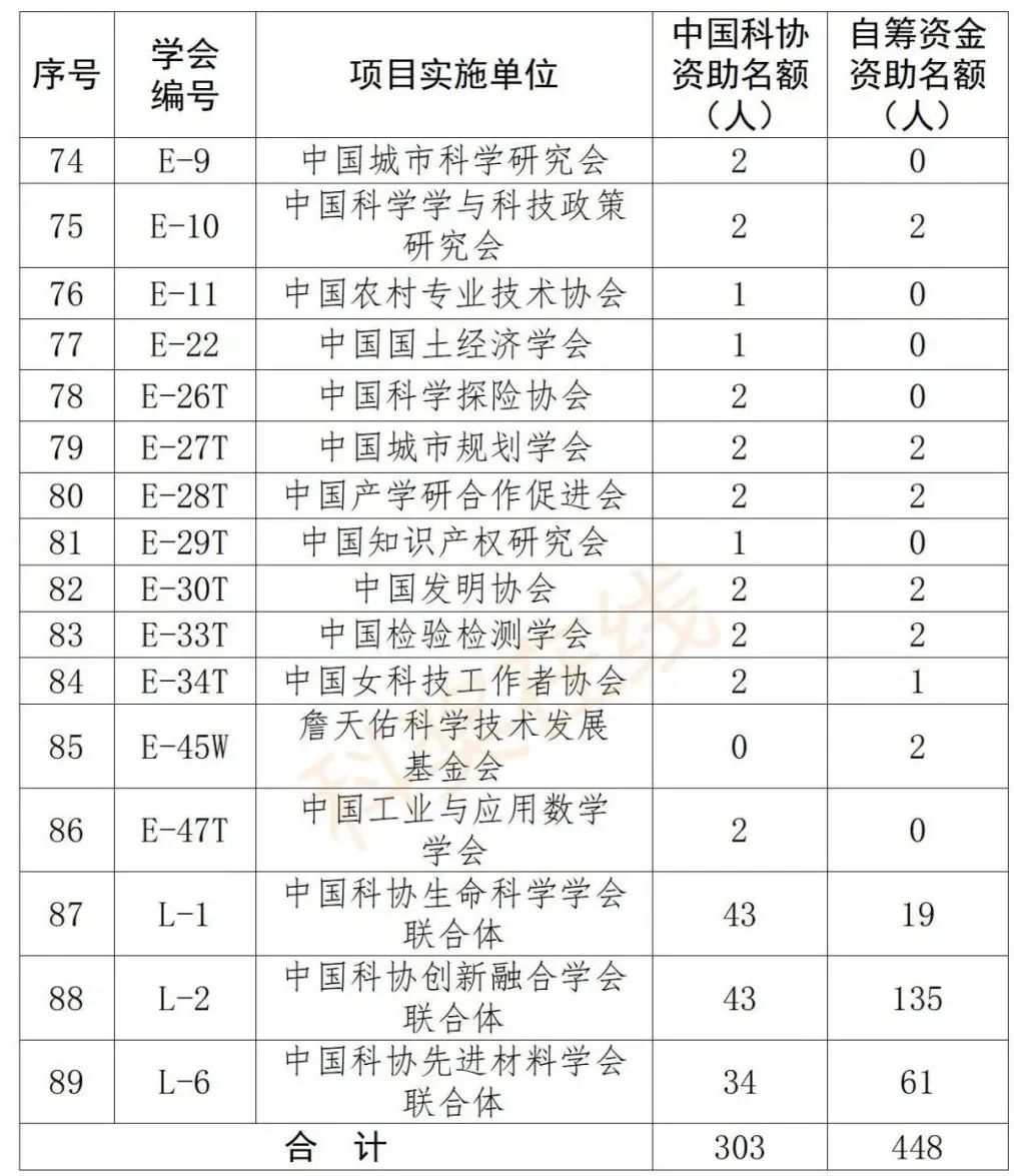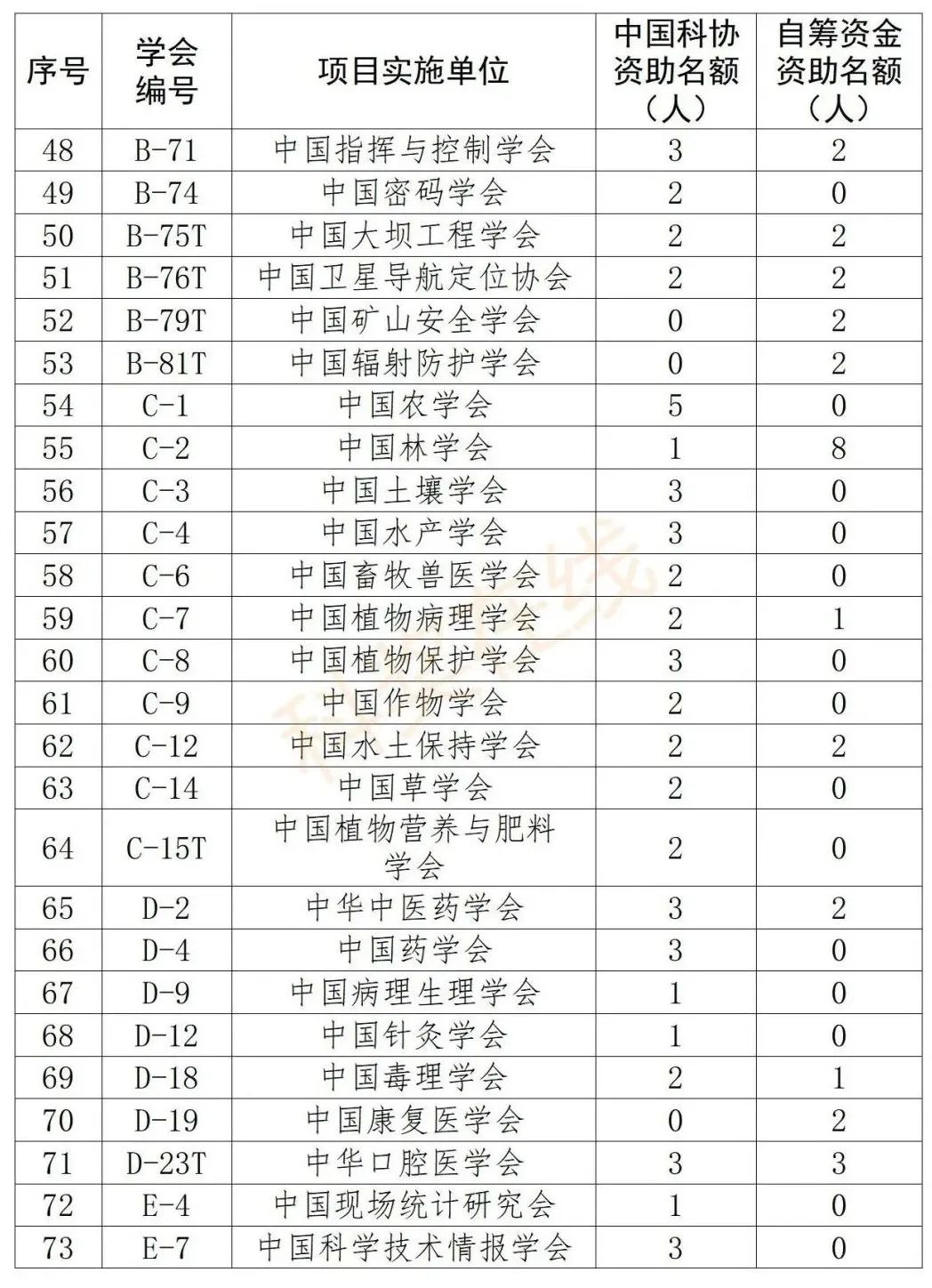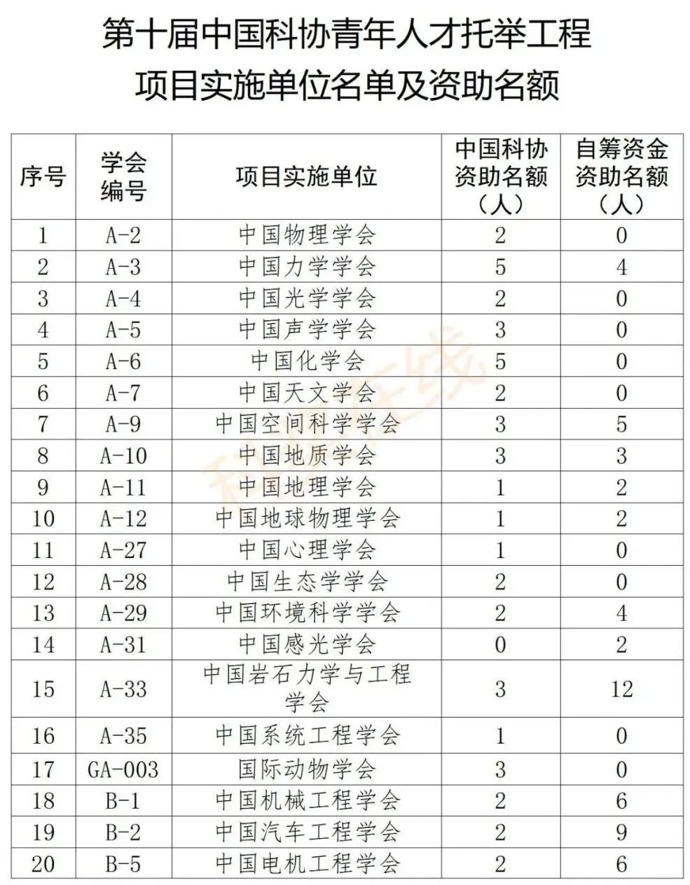 第十届中国科协青年人才托举工程项目实施单位名单及资助名额