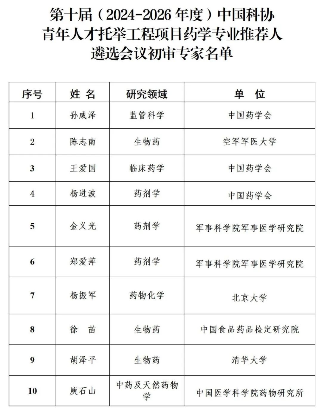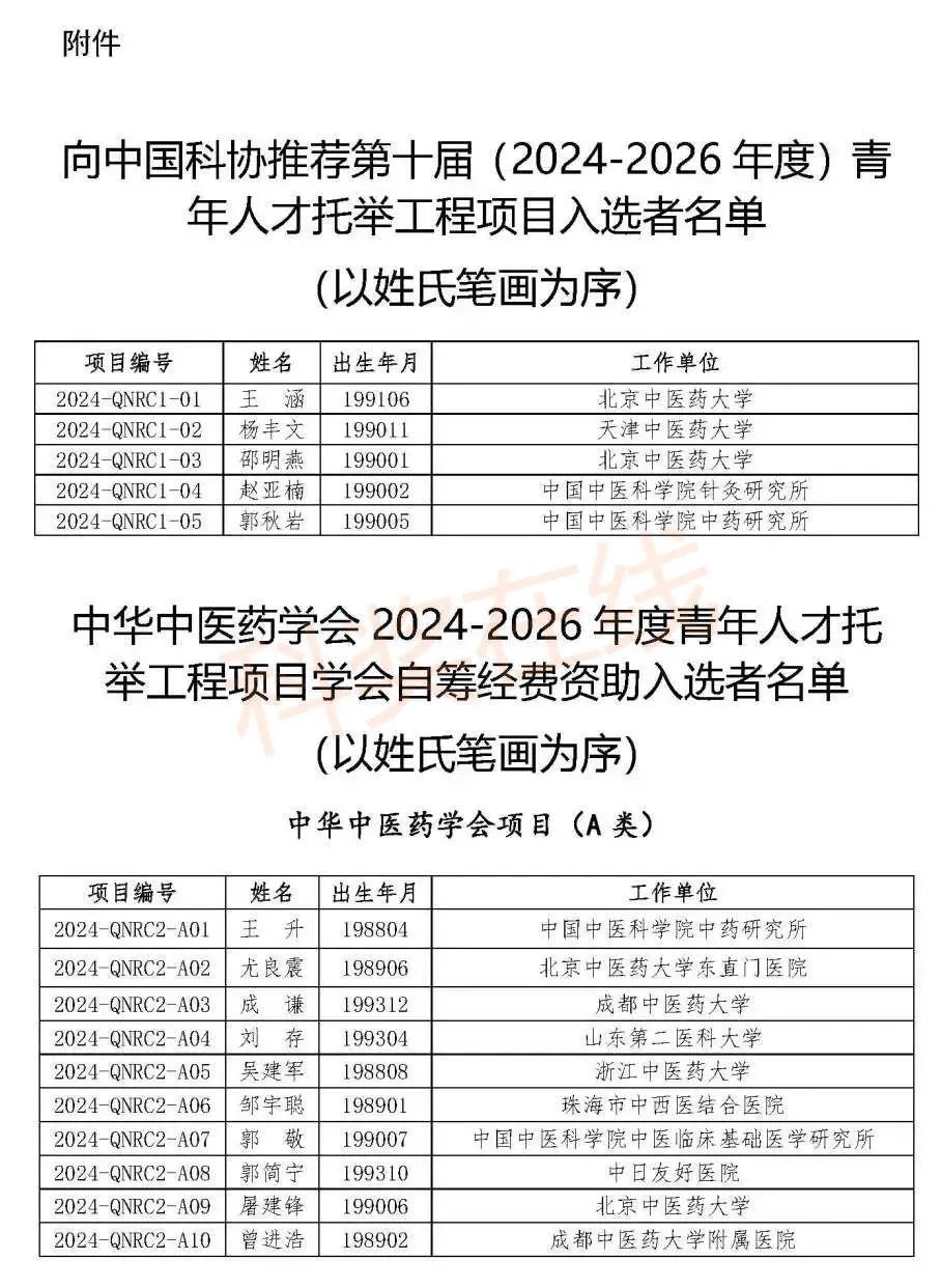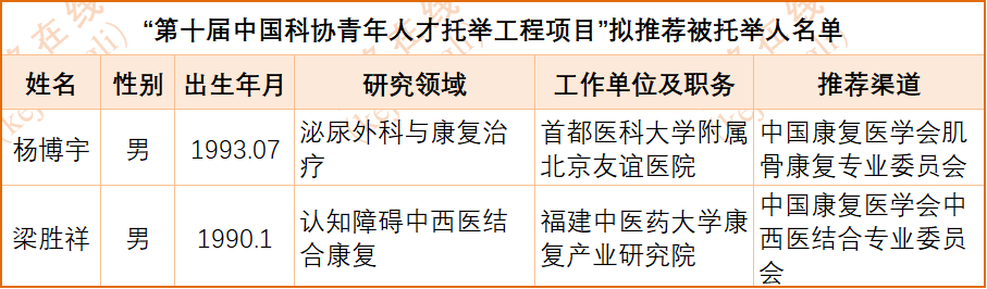 截至今日,多家单位已公示第十届“青年人才托举工程”项目拟入选名单,具体名单汇总如下: