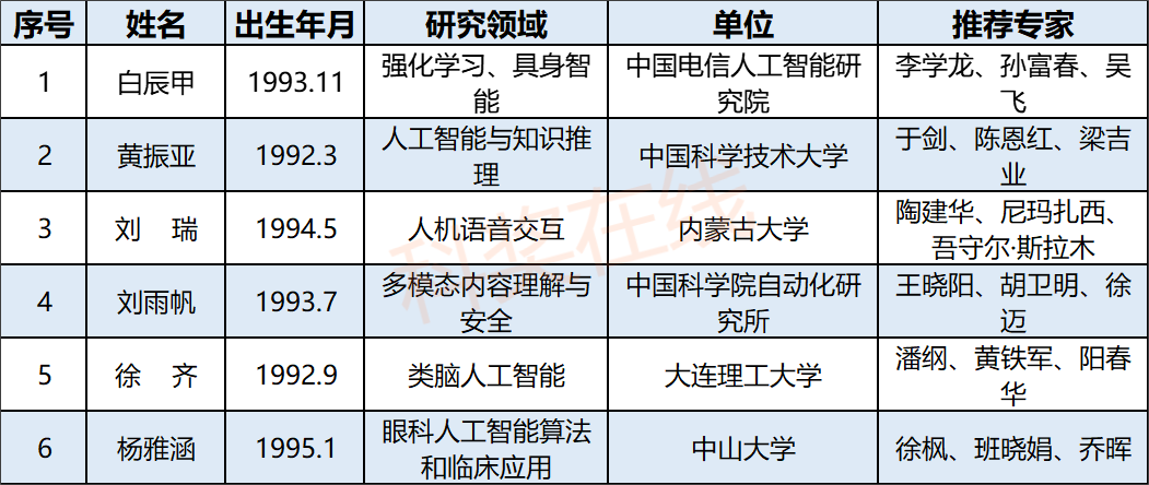中国人工智能学会第十届中国科协青年人才托举工程项目入选名单
