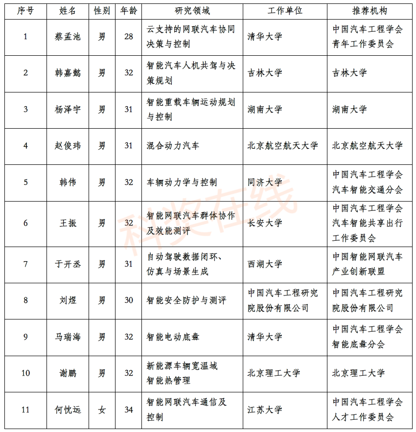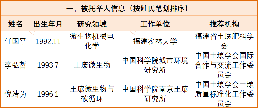 中国汽车工程学会(11人) 中国土壤学会(3人) 中国科学学与科技政策研究会(4人) 中国天文学会(4人) 中国植物病理学会(3人)