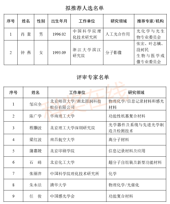 第十届“中国科协青年人才托举工程项目”拟推荐候选人
