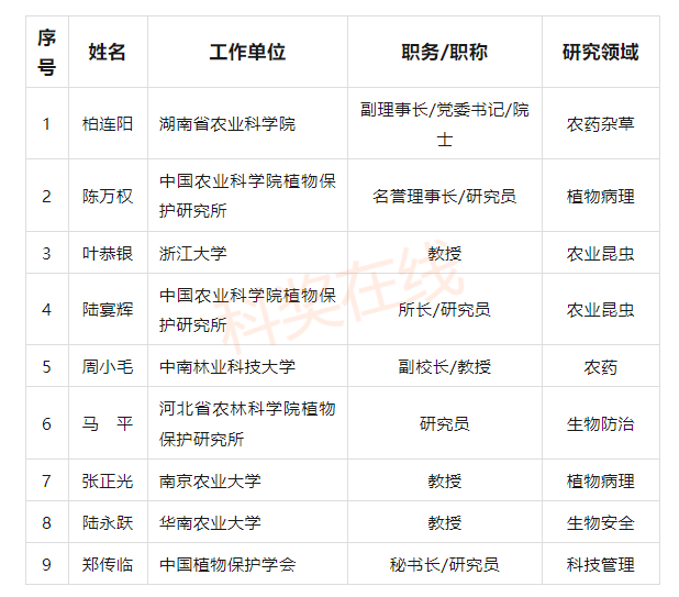 中国植物保护学会(3人) 中国发明学会(4人) 中国草学会(2人)