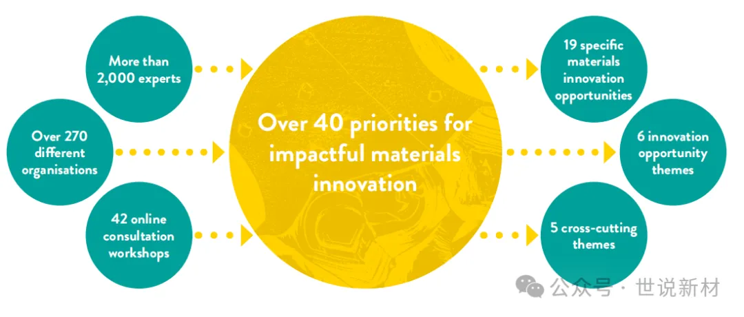 2025年1月,英国正式启动《国家材料创新战略》(National Materials Innovation Strategy)。该战略由英国国家级材料科学研究创新机构——亨利·罗伊斯研究所起草和发布,汇聚来自270多个不同组织的2000余名专家的集体智慧,明确了英国未来材料创新优先事项,应对可持续发展、能源效率和医疗保健等关键挑战。(全文7700多字,预计阅读需20分钟。) 1 战略简介 在当今时代,材料创新已成为推动社会进步和经济发展的核心力量,深刻地影响着人们生活的方方面面。从新能源的开发利用到医疗技术的突破,从基础设施的升级建设到电子产品的迭代更新,材料科学的创新成果无处不在。英国,凭借其深厚的材料科学底蕴,在这一领域一直处于世界领先地位。《国家材料创新战略》的出台,更是为英国材料创新的未来发展绘制了宏伟蓝图,旨在进一步巩固其全球领导地位,通过材料创新推动经济增长,解决社会面临的诸多重大挑战。 该战略由英国国家先进材料研究所——亨利·罗伊斯研究所(Royce)牵头推进,旨在利用英国在材料科学领域的世界领先专长,应对可持续发展、能源效率与医疗健康等重大挑战。 在制定过程中,通过线上研讨会等形式,广泛征求了超过 270 家不同机构的 2000 多名专家的意见。这些专家来自不同的行业和领域,包括大型企业的高管、高校的科研人员、政府部门的政策制定者以及非政府组织的代表等。他们从各自的专业角度出发,分享了对市场机会、材料创新解决方案的见解,以及实现这些解决方案所需的能力和投资方面的差距。 经过充分的讨论和分析,确定了 19 个具体的材料创新机会和 40 多个优先事项。这些机会和优先事项涵盖了多个领域,从新兴的量子技术到传统的建筑材料领域,都有涉及。它们是基于对市场需求、技术发展趋势、英国自身优势和面临挑战的综合评估而确定的,具有很强的针对性和前瞻性,为英国材料创新的未来发展指明了重点方向。 《国家材料创新战略》概述了一项通过先进材料创新驱动英国经济增长的全面咨询、架构与行动计划。 通过促进产业界、学术界与政府的三方协作,该战略致力于加速从基础研究到商业化的转化进程,提升生产力,增强国家抗风险能力,并创造高技能就业岗位。 重点领域涵盖能源解决方案、未来医疗、结构创新、先进表面技术、下一代电子器件及可持续消费品。这一倡议将巩固英国在全球材料创新领域的领导地位,为繁荣可持续的未来奠定基础,支撑英国多元化产业发展。 战略规划了六大"机遇主题",旨在推动高影响力创新,促进生产率提升、就业增长与全民繁荣。其独特之处在于聚焦具有变革性的赋能技术与方法——这些被纳入"横向主题"的创新将彻底重塑材料创新在多领域的应用模式。 其中,"材料4.0"与"可持续性"两大横向主题具有颠覆性意义,需要采用灵活的系统思维整合多元技术方法,通过整体性视角实现材料创新在实施、应用与规模化方面的质的飞跃。 报告包括《材料未来:国家材料创新战略执行摘要》与《国家材料创新战略完整报告》两份核心文件。 战略目标体系包含九大核心要务: 加速创新:打通从发现到应用的转化路径,打破行业壁垒与学科界限 驱动经济增长:通过材料创新显著提升经济贡献,创造高技能就业 可持续与韧性发展:将可持续理念融入创新全流程,助力净零经济转型 应对重大挑战:重点突破能源系统脱碳、医疗革命、循环经济等关键领域 发挥既有优势:整合英国顶尖研发实力、监管环境与人才储备实现突破 构建统一框架:建立跨行业协同机制应对共性机遇与挑战 培育高价值产业:聚焦高潜力投资领域,以示范性创新支撑重点产业 促进协同创新:搭建产学研政多方协作的创新生态 巩固全球领导力:持续提升英国在材料科学与创新领域的国际话语权 这一目标体系旨在将材料科技潜力转化为现实生产力,确保英国保持全球材料创新领导地位。通过系统布局,战略将推动材料创新成为英国经济转型升级的核心引擎,为构建可持续未来提供关键支撑。 2 战略背景与意义 材料创新是未来技术发展的核心,影响能源、国防、基础设施、医疗和数字化等关键领域。英国在材料科学领域具备深厚的学术和产业基础,拥有世界领先的专业知识。 当前,英国材料科学在全球处于领先地位。英国在材料科学领域拥有卓越的学术和产业基础。众多世界知名的高校,如牛津大学、剑桥大学和曼彻斯特大学等,在材料科学研究方面成果丰硕,培养了大量顶尖人才。英国的材料产业也十分发达,涵盖了从基础材料生产到高端材料应用的多个领域,拥有一批在国际上具有竞争力的企业。 然而,英国材料创新也面临着一系列挑战。其中,研究成果商业化的瓶颈问题尤为突出,许多具有潜力的材料研究成果难以顺利转化为实际产品并推向市场,导致创新价值无法充分实现。此外,跨领域协作不足,不同研究学科、供应链和产业之间缺乏有效的沟通与合作,限制了材料创新的整体效能。 因此,制定国家材料创新战略具有紧迫性和重要性,它将为英国材料创新的发展提供明确的方向和有力的支持。 3 经济影响与潜力 (一)经济贡献 材料创新企业在英国经济中占据着重要地位,对英国经济的直接和间接贡献巨大。每年,材料创新企业为英国经济贡献约 450 亿英镑,这一数字占英国总 GVA 的 2%。更为重要的是,这些企业
