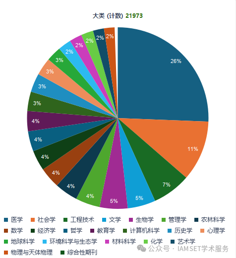 2025 年中国科学院文献情报中心期刊分区表有升级和调整,在期刊范围上进行了扩大,在原本自然科学(SCIE)、社会科学(SSCI)、人文科学(AHCI)基础上,增加 ESCI 期刊收录且给予分区。 在学科设置方面继续完善,健全大类学科体系,通过期刊主题分布和引用关系生成学科结构,参考相关文件学科内涵和外延,共设置 21 个学科。 人文科学方面,原人文科学期刊拆分到哲学、历史和文学大类;法学更名为社会学,涵盖法学、政治学和社会学研究的期刊。